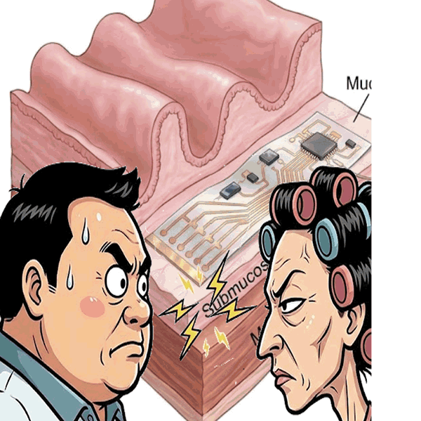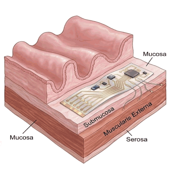 • 内視鏡で胃腸の粘膜下に柔らかい電子回路を埋め込みます。