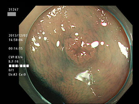 上記100名より抽出した平坦・陥凹型腺腫(=癌化の危険が高いが見落としやすい病変)の内視鏡写真