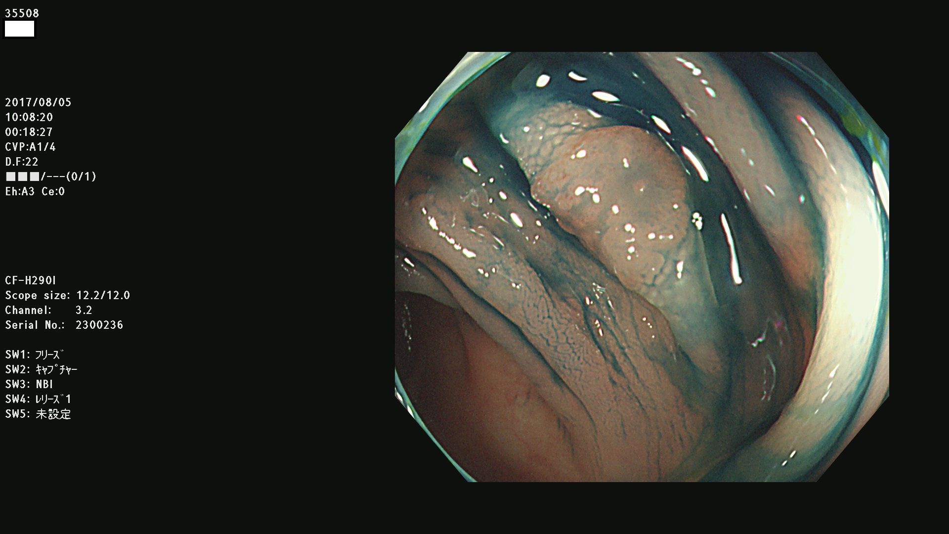 上記100名より抽出した平坦・陥凹型腺腫・SSAP(=癌化の危険が高いが見落としやすい病変)の内視鏡写真