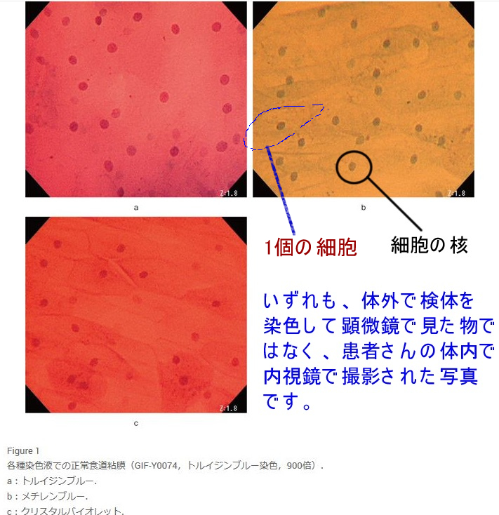 ・・・・・・安全性に疑問があるからです。もちろん人での発癌性が証明された訳ではありません(でなければメーカーも発売しません)。しかし多くの論文がその危険を警告しています(下記・論文リスト)。もしかしたら、それらは過剰な不安かもしれません。私はメーカーが自己責任で販売することに異を唱えるつもりは毛頭ありません。癌が見つかり大学病院で内視鏡切除(ESD)を施行するような場合、メチレン・ブルーを使った拡大観察は非常に重要で多くの患者さんの福音になるでしょう。しかし当院のように「健康な方の検診」で「核を染める観察」の必要性は無いというのが当院の方針です。当院は今後も「核を染める色素」は絶対に使用しません。
