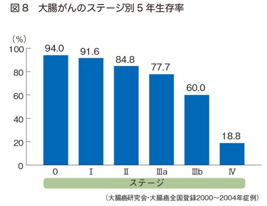 ステージというのは「手術後に切除検体を調べて、転移があればステージV、Wにする、転移が無ければステージT、Uにする(転移の程度で決める)」という意味なので、このグラフの意味するものは「転移が生存率を決める」という事実であり、「早期発見の効果」ではありません。また横軸を「癌の深達度」に変えても意味は、ほぼ同じです。
