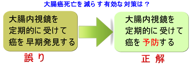 勝利するには、大腸内視鏡を「癌の検診(早期発見)」から「癌の予防(ポリープ切除)」へシフトさせる(戦略の変更)ことが重要であると考えます