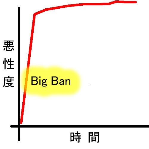 2度目のBig Banは最初のBig Banに比べて、極めてCriticalです。何故ならブレーキ(癌抑制遺伝子)はDNA複製・校正装置と深い関係があり、この故障は「短期間での遺伝子変異の蓄積(不安定なDNA)」を引き起こすからです