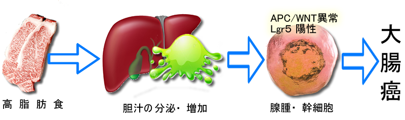幹細胞は食事中の発癌性物質に感受性が高いと2016年に報告されました。脂肪が大腸癌の原因であることは昔から疫学的に知られていましたが2016年のNature 2019年のCELLに詳細な分子生物学的機序が報告されました。異なる機序が報告されているのですが、いずれも「脂肪が腸管・幹細胞に発癌性を持つ」という点で一致しています。