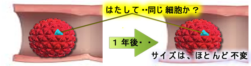 「ポリープを切除せずに1年後の経過観察としたが形態・サイズは不変だった」という事はよく経験されます。では、この場合、細胞は交代しているのでしょうか?あるいは同じ細胞が、そのまま存在しているのでしょうか?