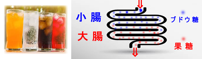 APCマウス(大腸癌モデルマウス)を使った実験で果糖は「肥満を起こさない少量でも」大腸癌を増加させることが2019年のScience誌に報告され注目されました。ブドウ糖に比較して果糖は小腸で吸収されにくいため、大腸に、より多く届きます。そのため大腸の細胞が「高栄養状態」になり易いのが原因という仮説が出されています