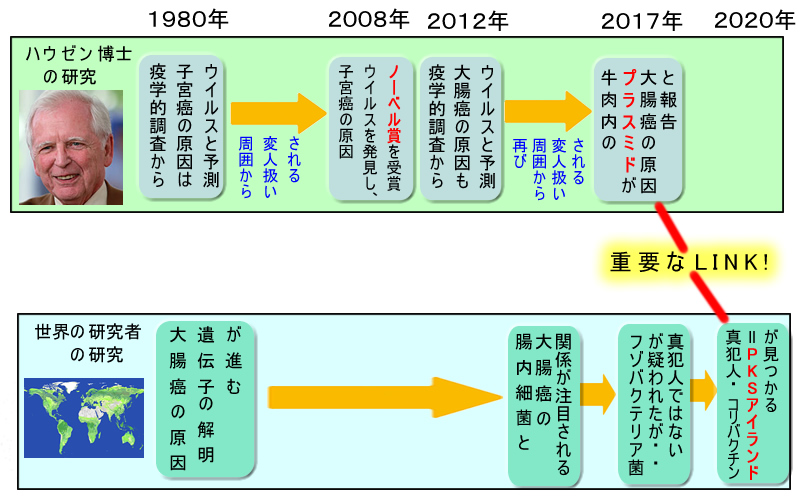 はたして「PKS島の原因となるプラスミドが牛乳内に有るのか?」、これが見つかれば、博士は2度目のノーベル賞を受賞するでしょう。現在、86歳の博士は今も精力的に研究を続けていますが、まだ何とも言えません。