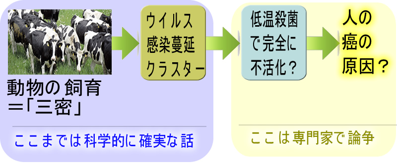 BLVは「牛で最も頻度の多い発癌性ウイルス」で乳牛、肉牛の半分以上が感染しています。「白血病になった牛の流通」は禁止されていますが、「ウイルスに感染しているだけの牛」の牛乳、牛肉は普通に流通しています。これは「牛乳の低温殺菌法」(風味を損なわないマイルドな殺菌法)で、このウイルスは失活するからです(熱や胃酸に弱いと考えられています)。