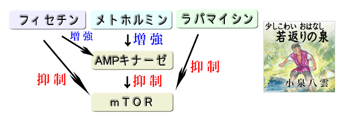 メトホルミン 糖尿病治療薬。ポリープ抑制効果も確認された フィセチン ポリフェノール類フラボノイド(上記のクエルセチンの類縁) ラパマイシン 免疫抑制剤