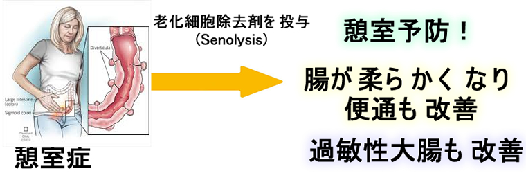加齢による便秘、憩室はSenolysisで劇的に改善すると思われます