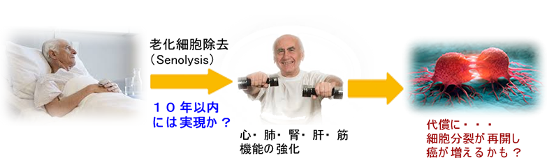 (専門的)既に抗癌剤として開発されたSenolysis剤があり、人の治験も進んでいる