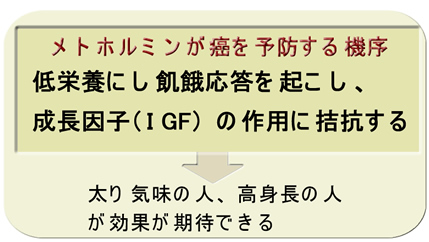 逆に言うなら・・低身長の方、痩せている方は不利益が大きいと予測される訳です。高齢者も、成長因子(IGF)が低下するので、メトホルミンの効果は無い可能性があります。