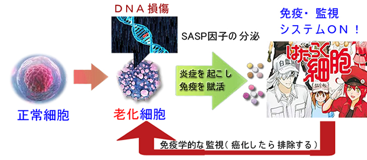 前の記事で「ポリープ(前癌状態)とは老化状態である」という「現在の定説」を紹介しました。「細胞老化」とは「細胞分裂を永遠に止めることで癌を予防する防衛手段」です。この老化細胞は自ら免疫系を活性化する因子(SASP)を分泌します。SASPは癌化を予防する重要な監視装置です。