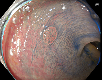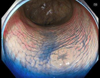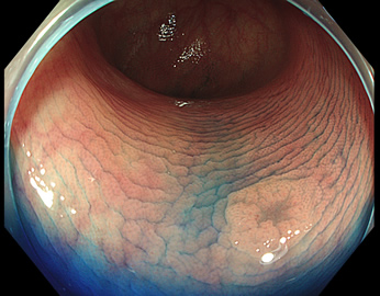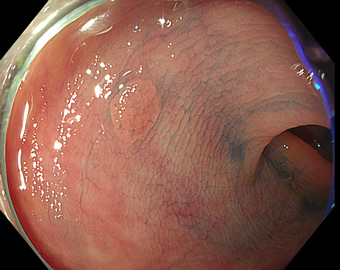 写真だけ、見ると「言われてみるとTXIの方が認識しやすい。でも僅かの差」と感じるでしょうが、この「僅かの差」が、人間の脳での検出には大きな差になります。青い色素(インジゴ・カルミン)が非常に強調され、粘膜の凸凹が明瞭になるのが特徴です。