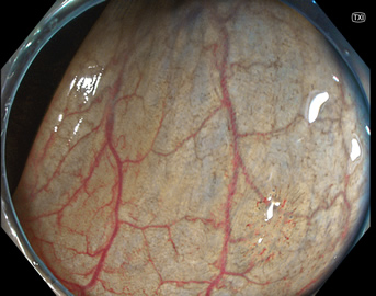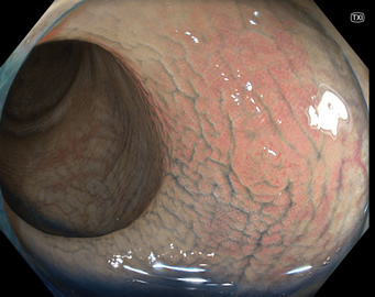 最近、当院で検査を受けた方は「粘膜の色が以前と違う」と感じたと思います。これは「TXI」という画像処理のためです。