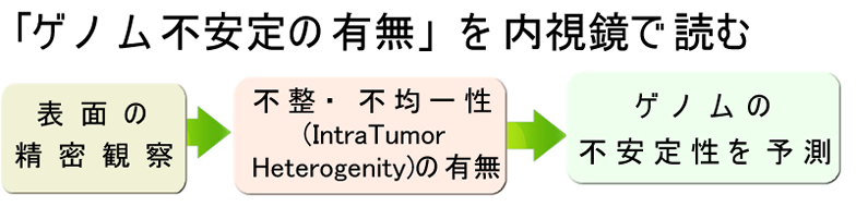 | 現時点では内視鏡でポリープの表面を観察して腫瘍進化(Intra Tumor Heterogenity)の有無を判定することが「最も正確なゲノム不安定性の判定方法」と考えています。これには高解像度内視鏡と色素散布が最も重要と考えます |