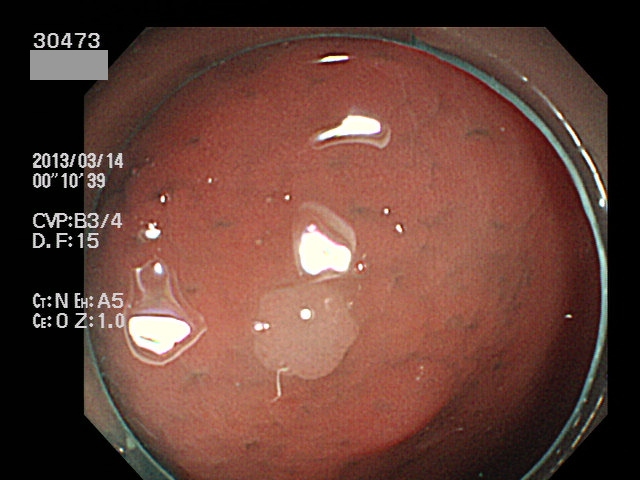 直腸やS字結腸の「外観が過形成ポリープと区別できない」小さなポリープが病理で腺腫と診断されることが時々あります。当院HPで掲載している以下の病変は、その典型です。一見すると「普通の直腸・過形成ポリープ」なのですが実は癌化の直前の病変(High grade Adenoma)でした。