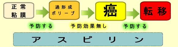 遂にと言いましょうか・・・・遺伝子組み換えマウスを使った研究報告(2021年)があり「アスピリンは過形成ポリープの癌化は減らさないが、癌の転移を抑制する」と結論されました