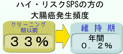 「SPSの大腸癌は予防可能であるが、早期にクリーニングを達成することが重要」「維持期が10年経てもポリープの頻度は減らずに、横這いで推移する。10年経っても油断はできない」と結論しています。