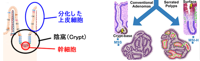 腺腫は「陰窩の最深部」で「幹細胞の腫瘍化」で生まれます。