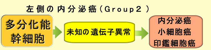 <最重要事実>グループ1,2、3は細胞の形態が同じ内分泌癌なのですが、遺伝子解析の結果からは「全くの別物」です。
