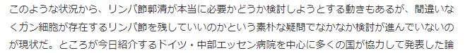 リンパ節廓清に効果が有るのは癌が「リンパ節に転移したが、その先には飛んでいない」という状況だけの訳ですが、そのような状況は現実的には多くないのかもしれません。
