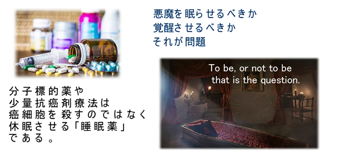 例えば放射線で治療する場合は「放射線を照射する直前は、癌を覚醒させる」べきです。しかし(放射線治療は、生涯に何度もできる治療ではありません)放射線治療が終わた後は「癌を眠らせる」方が良い訳です。このような研究は当に今、始まったばかりです。