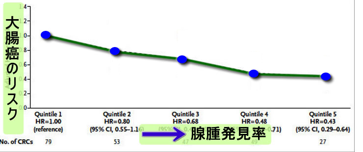 Q:腺腫発見率が何%なら大腸癌を、どの位、予防できるのですか?