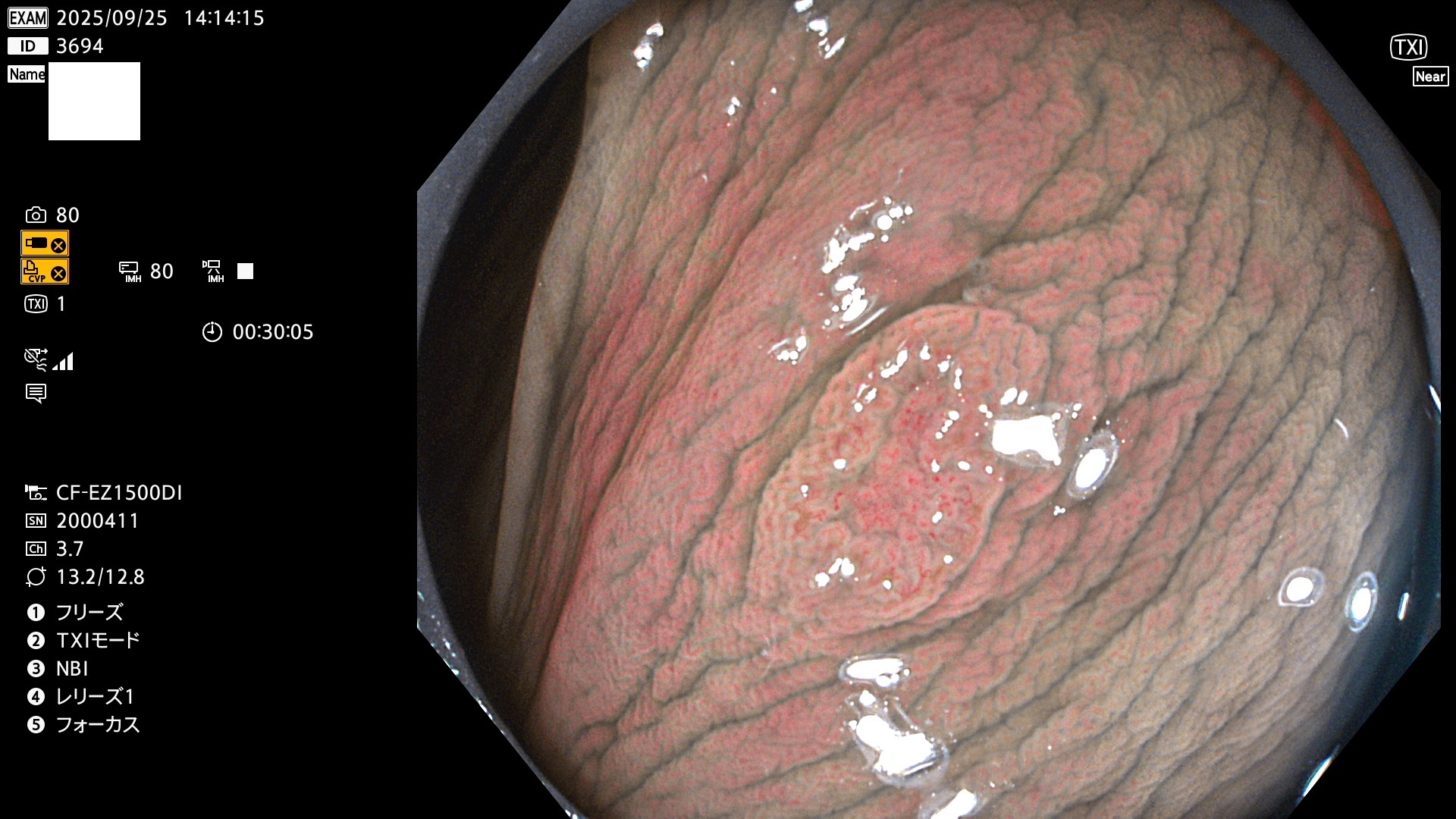 完全に平坦な物をUb、陥凹している物をUcと呼びます。Ubは認識が困難で、Ucはびらん(炎症)と紛らわしいために見落とされやすく、「内視鏡後・大腸癌」の原因になります。
