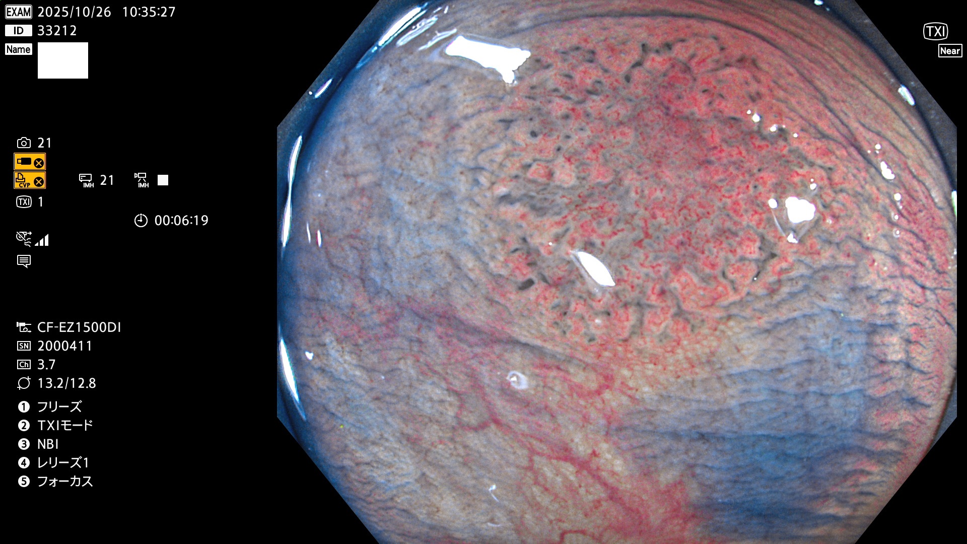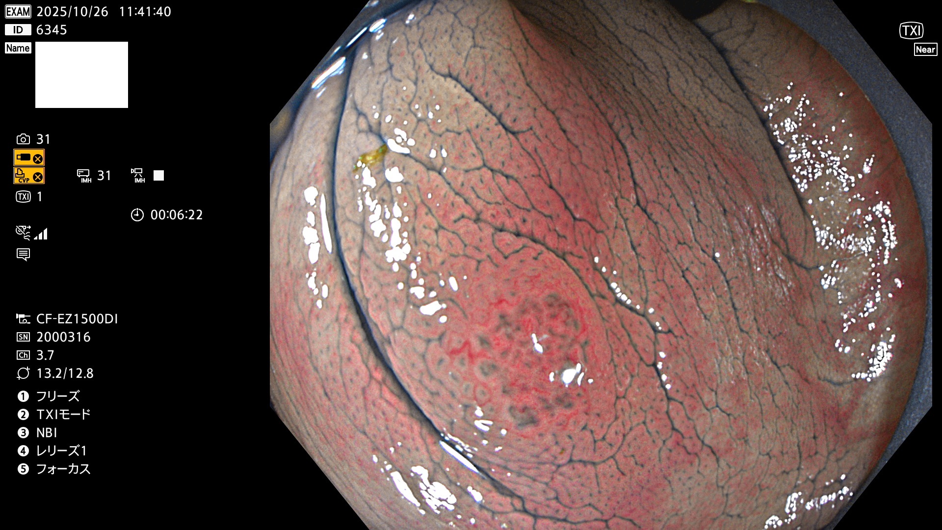 完全に平坦な物をUb、陥凹している物をUcと呼びます。Ubは認識が困難で、Ucはびらん(炎症)と紛らわしいために見落とされやすく、「内視鏡後・大腸癌」の原因になります。