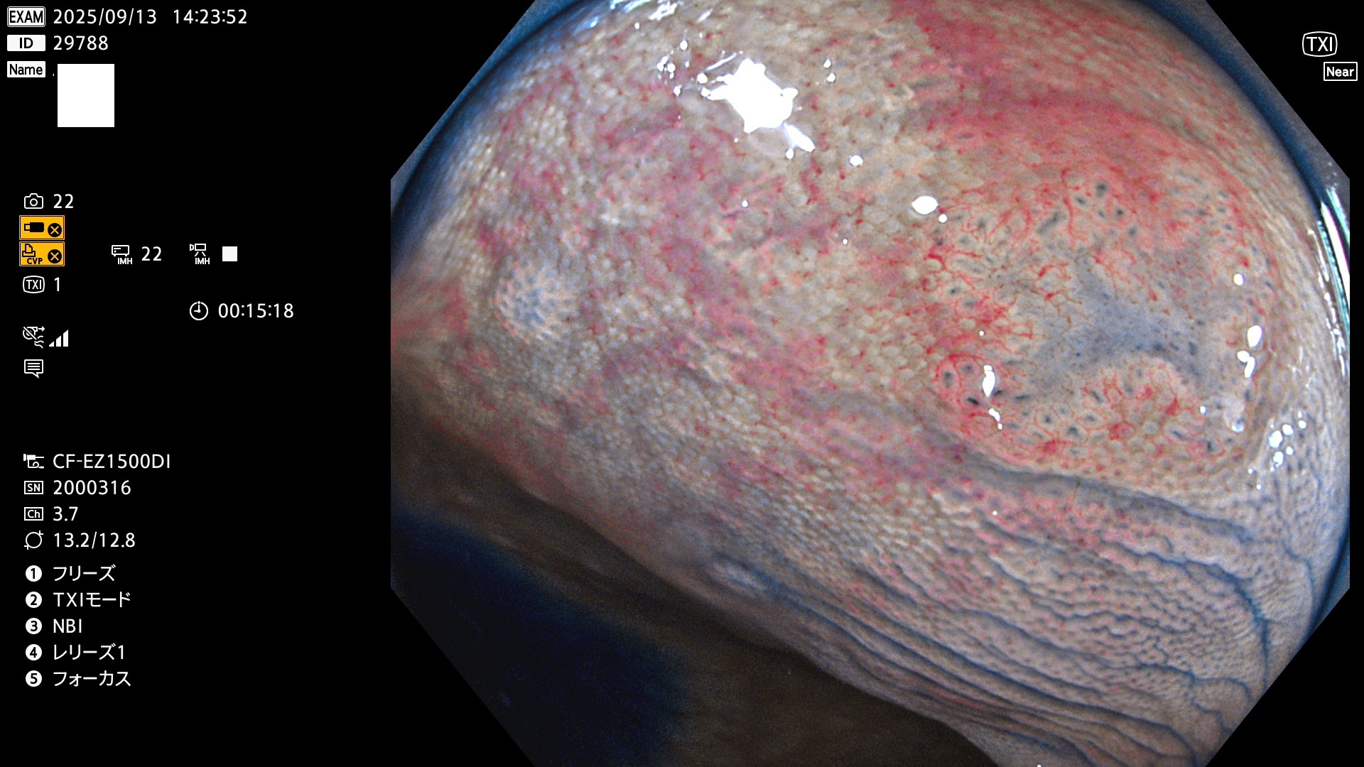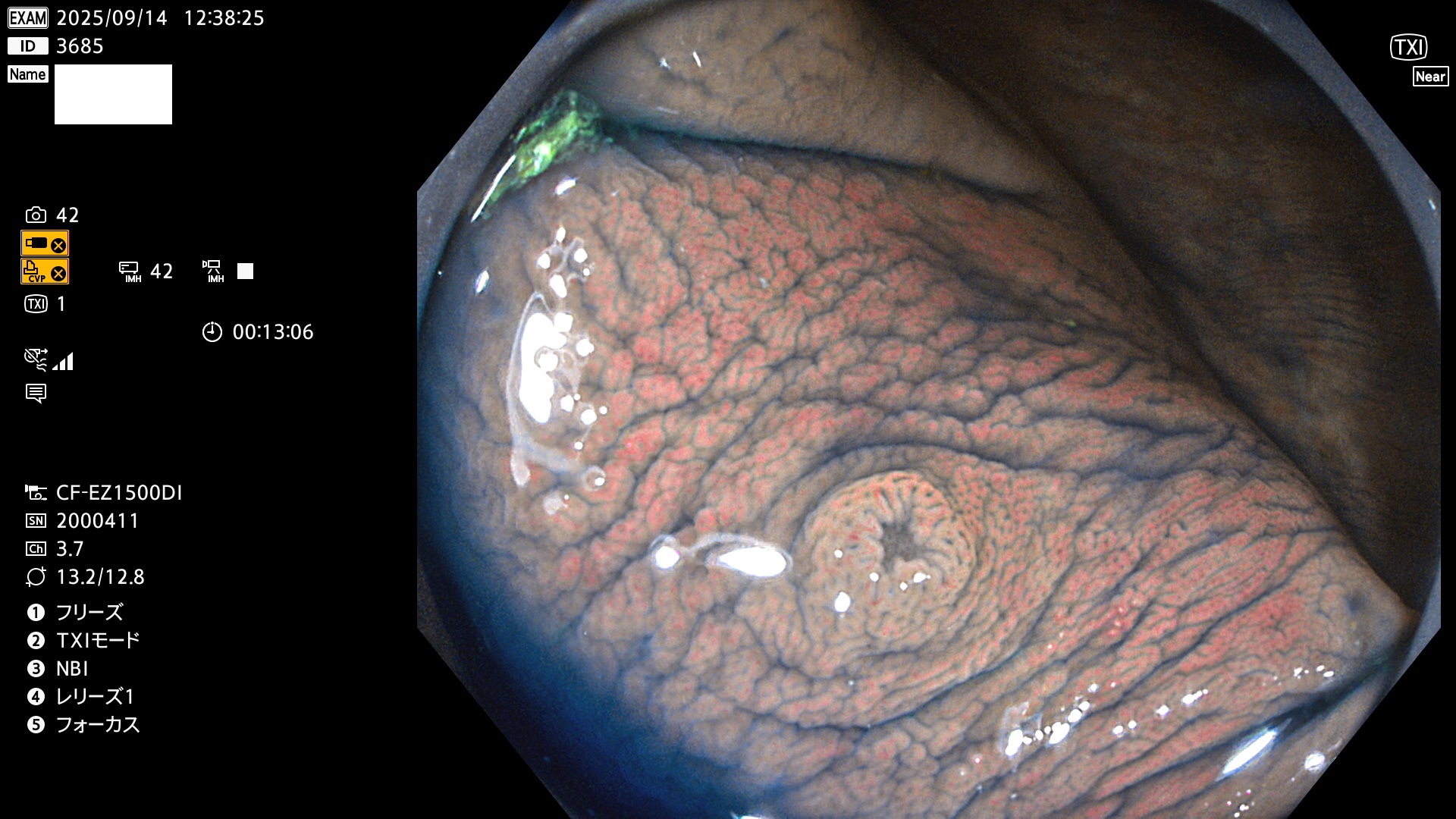 完全に平坦な物をUb、陥凹している物をUcと呼びます。Ubは認識が困難で、Ucはびらん(炎症)と紛らわしいために見落とされやすく、「内視鏡後・大腸癌」の原因になります。