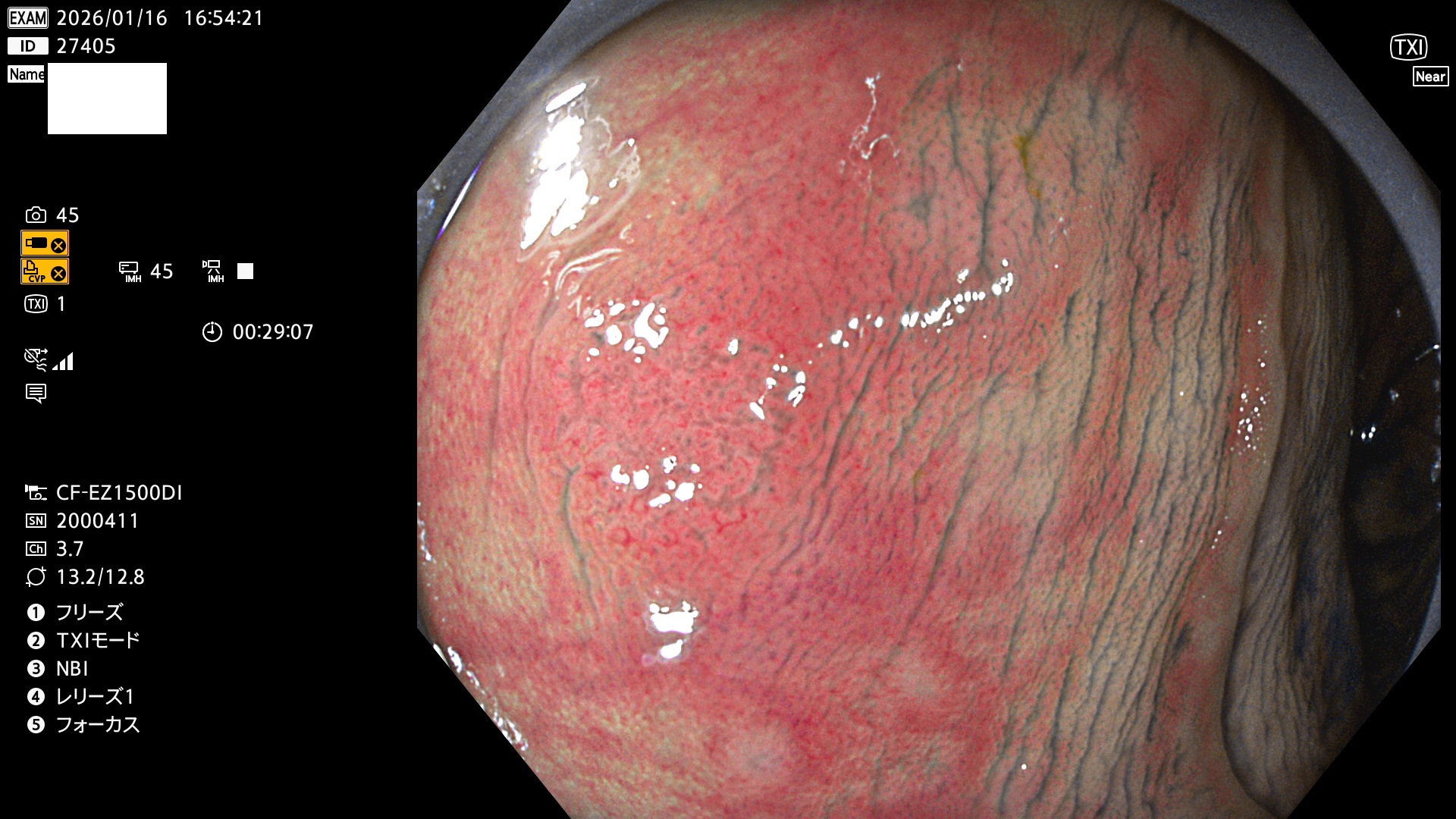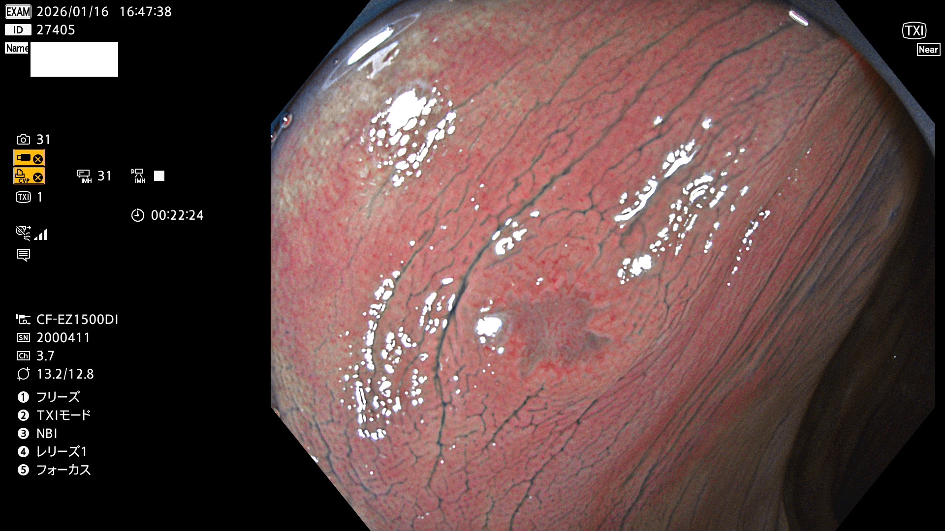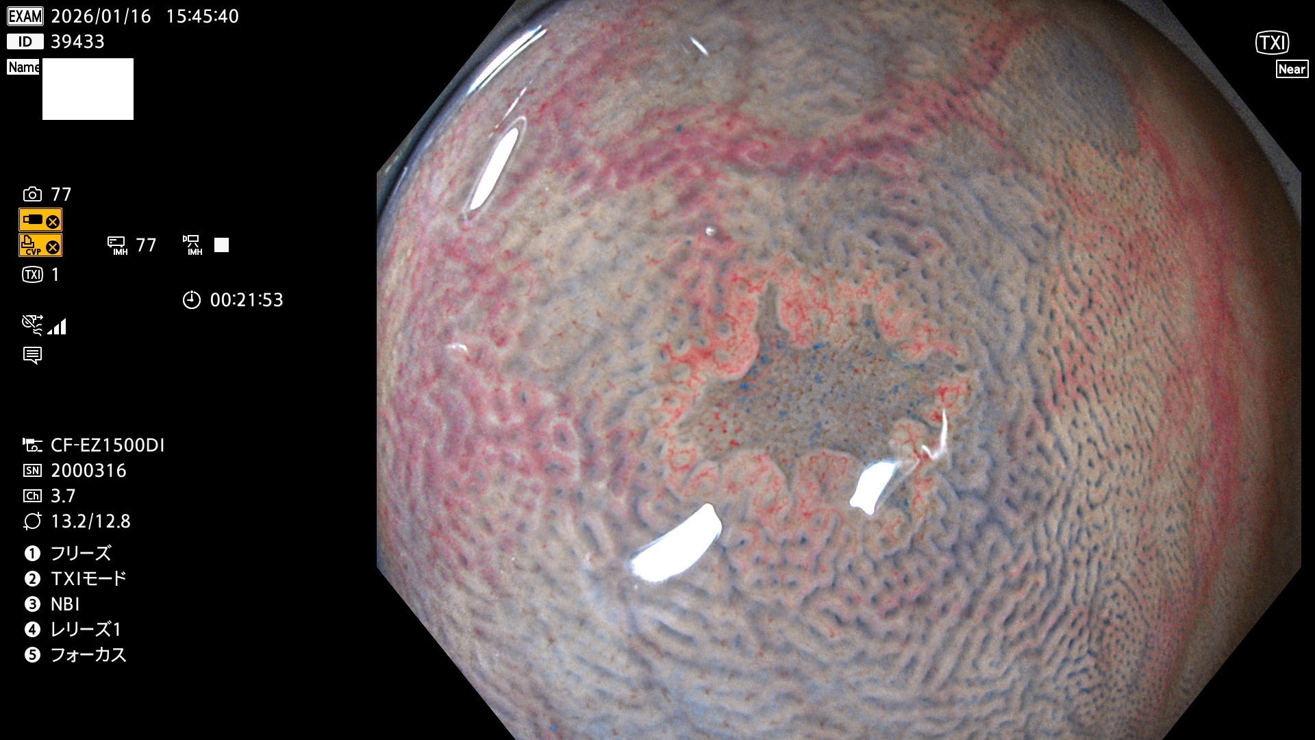 完全に平坦な物をUb、陥凹している物をUcと呼びます。Ubは認識が困難で、Ucはびらん(炎症)と紛らわしいために見落とされやすく、「内視鏡後・大腸癌」の原因になります。