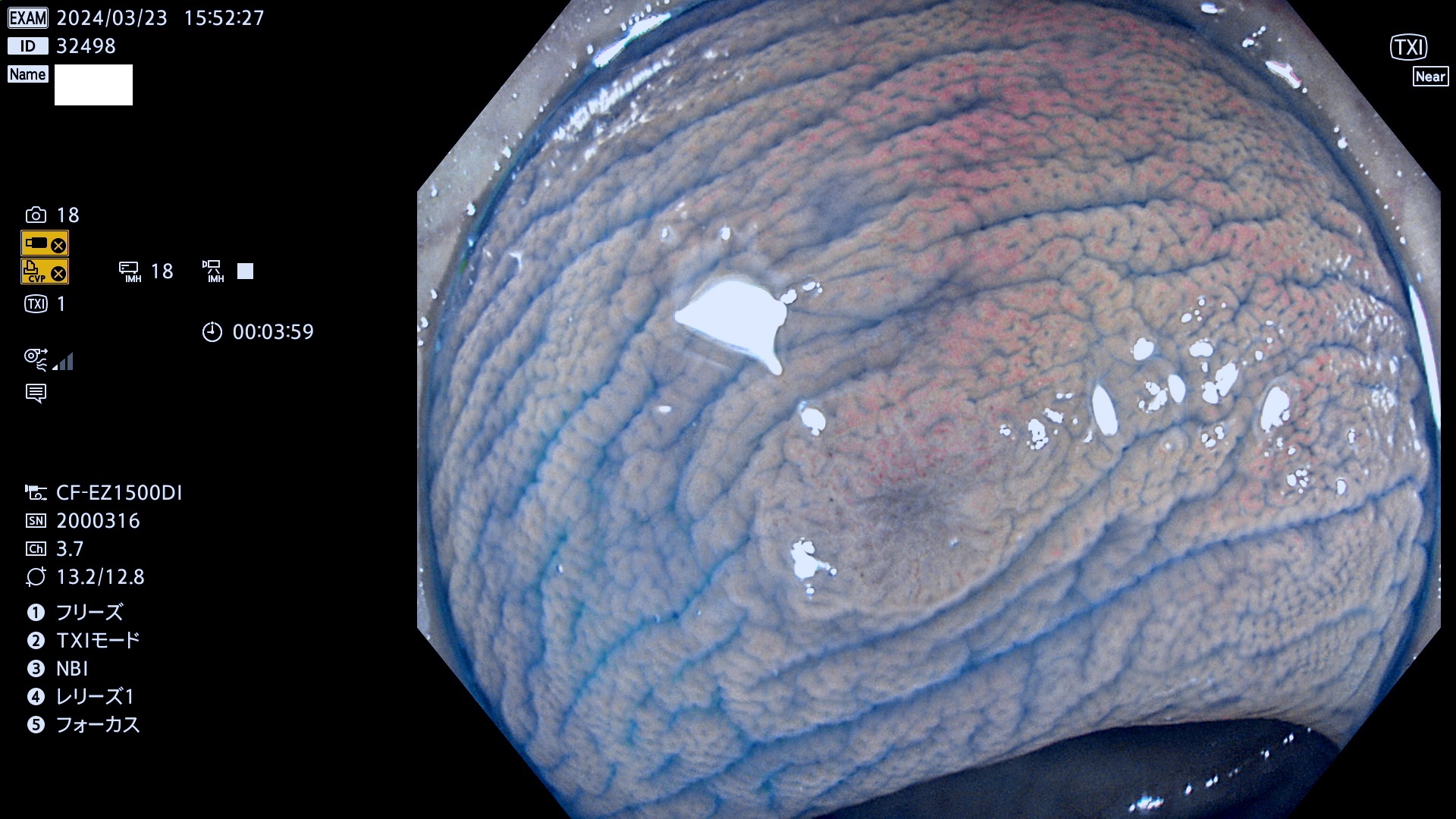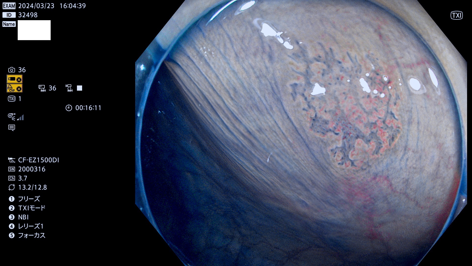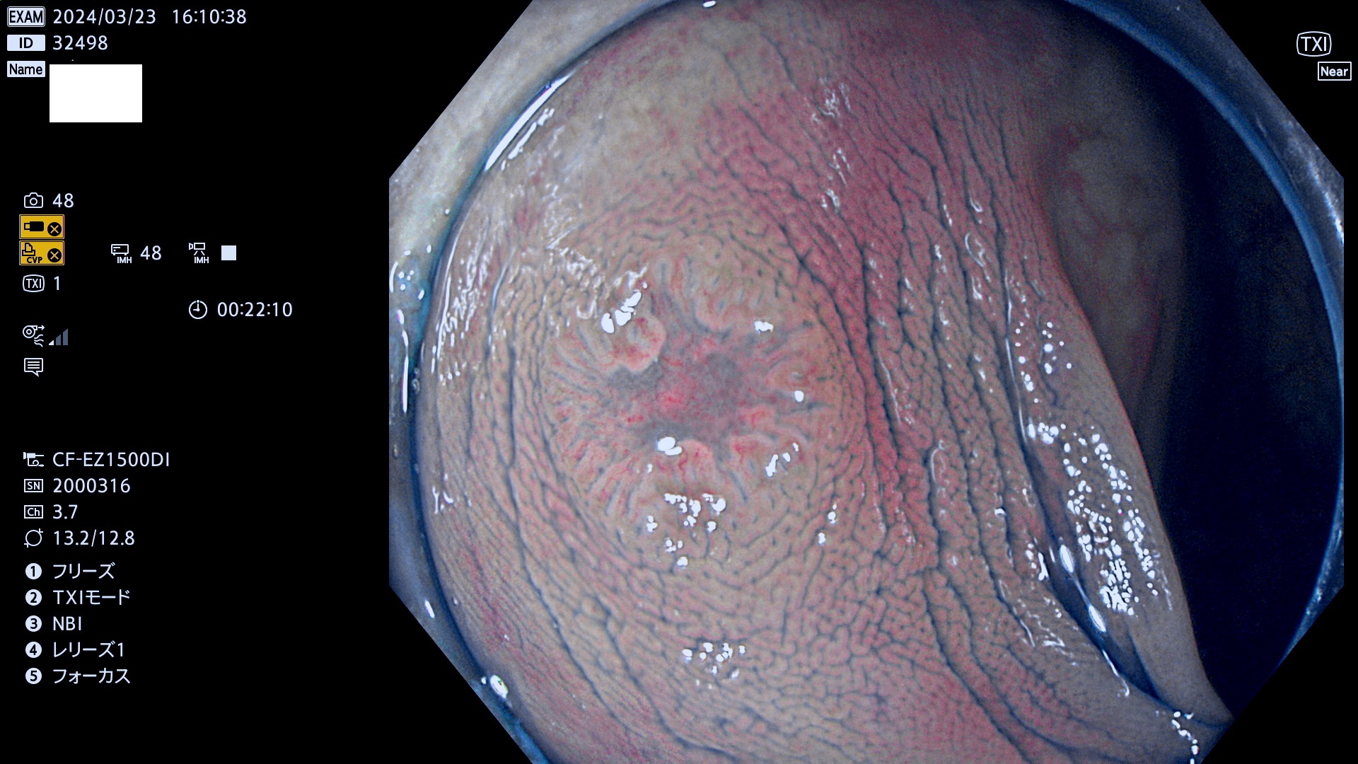 表面型腺腫(Flat Adenoma)の中で、完全に平坦な物をUb、陥凹している物をUcと呼びます。平坦隆起型(Ua)よりも、発見が難しく危険な病変です。
