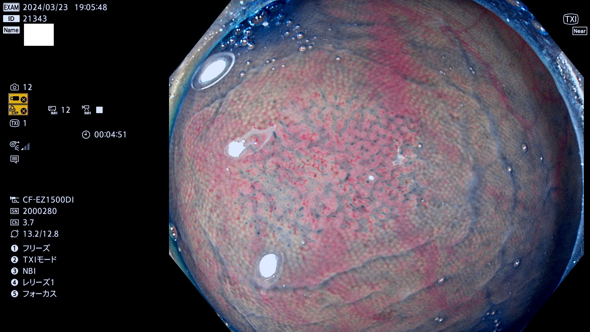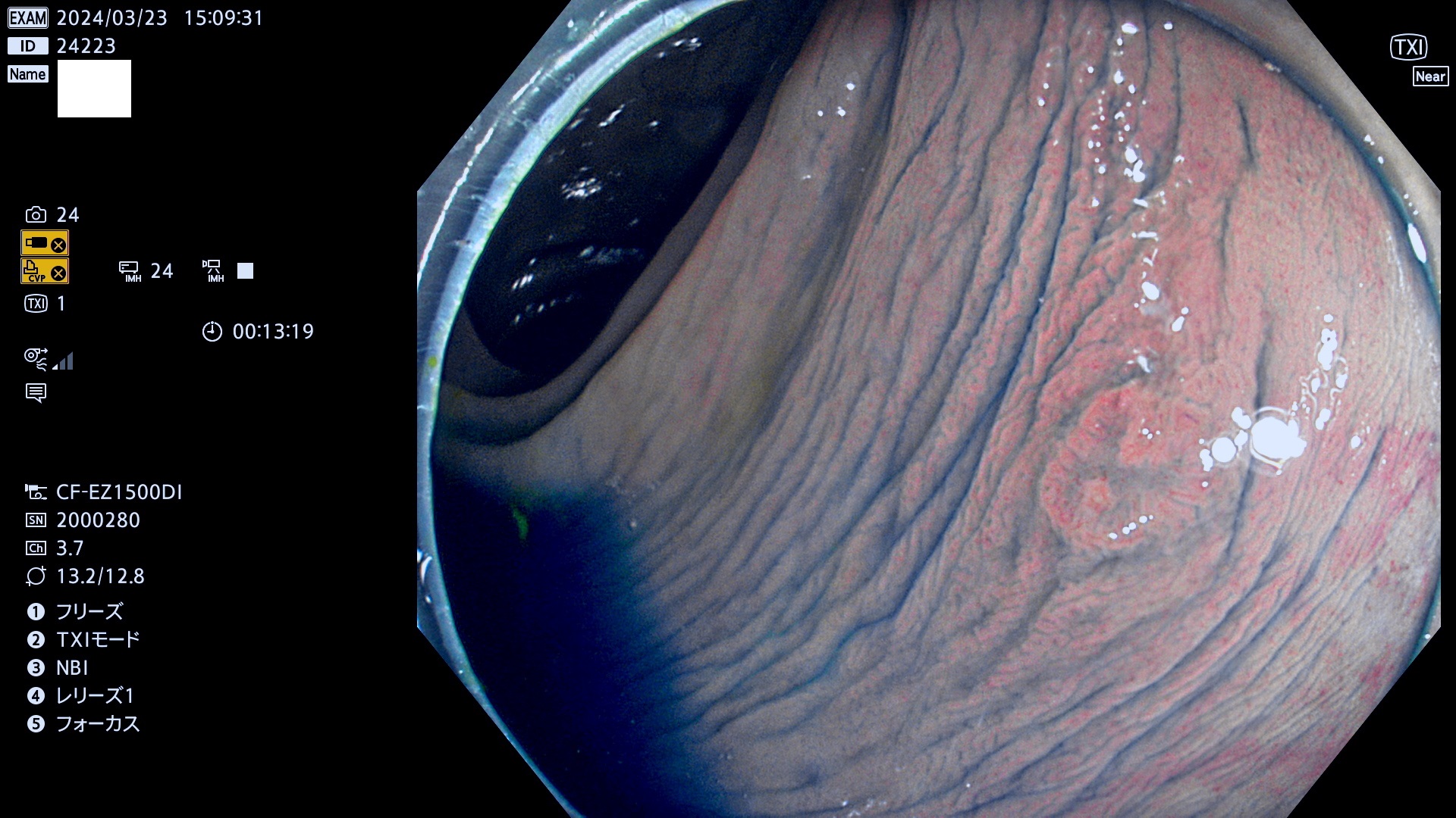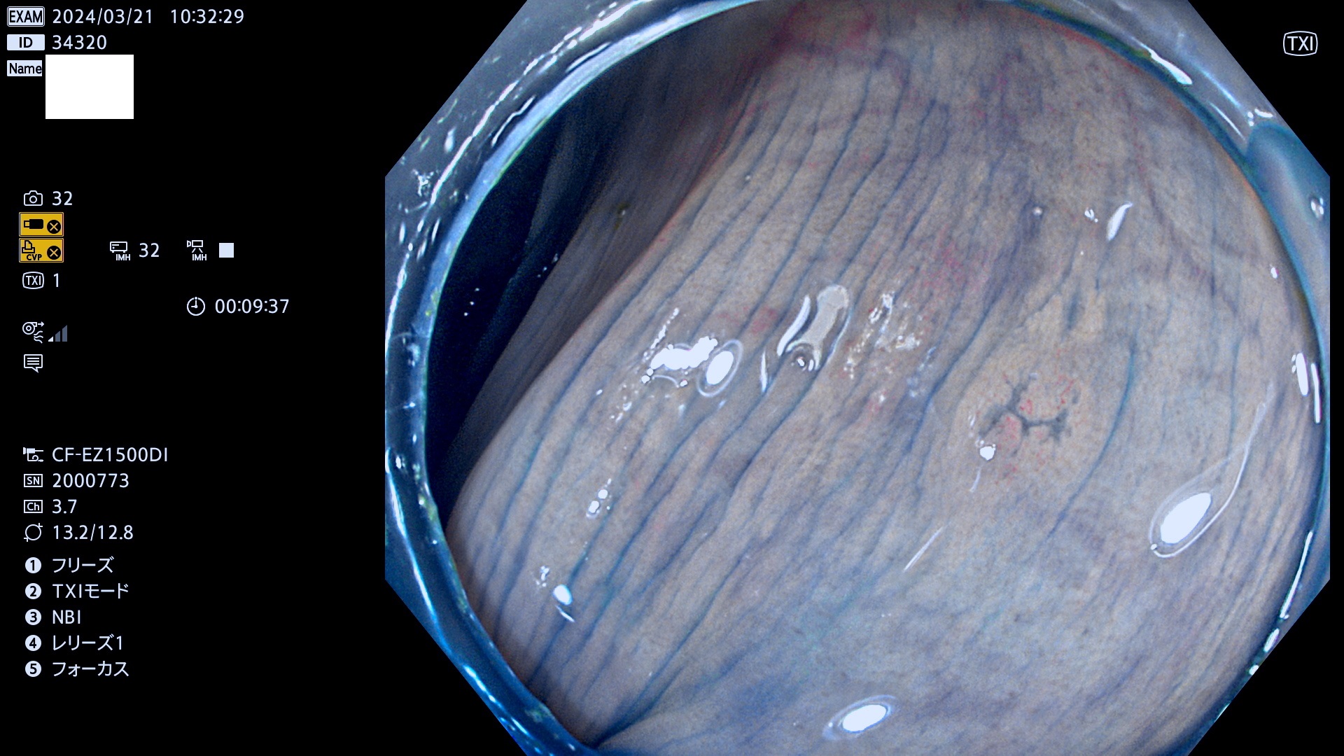 表面型腺腫(Flat Adenoma)の中で、完全に平坦な物をUb、陥凹している物をUcと呼びます。平坦隆起型(Ua)よりも、発見が難しく危険な病変です。