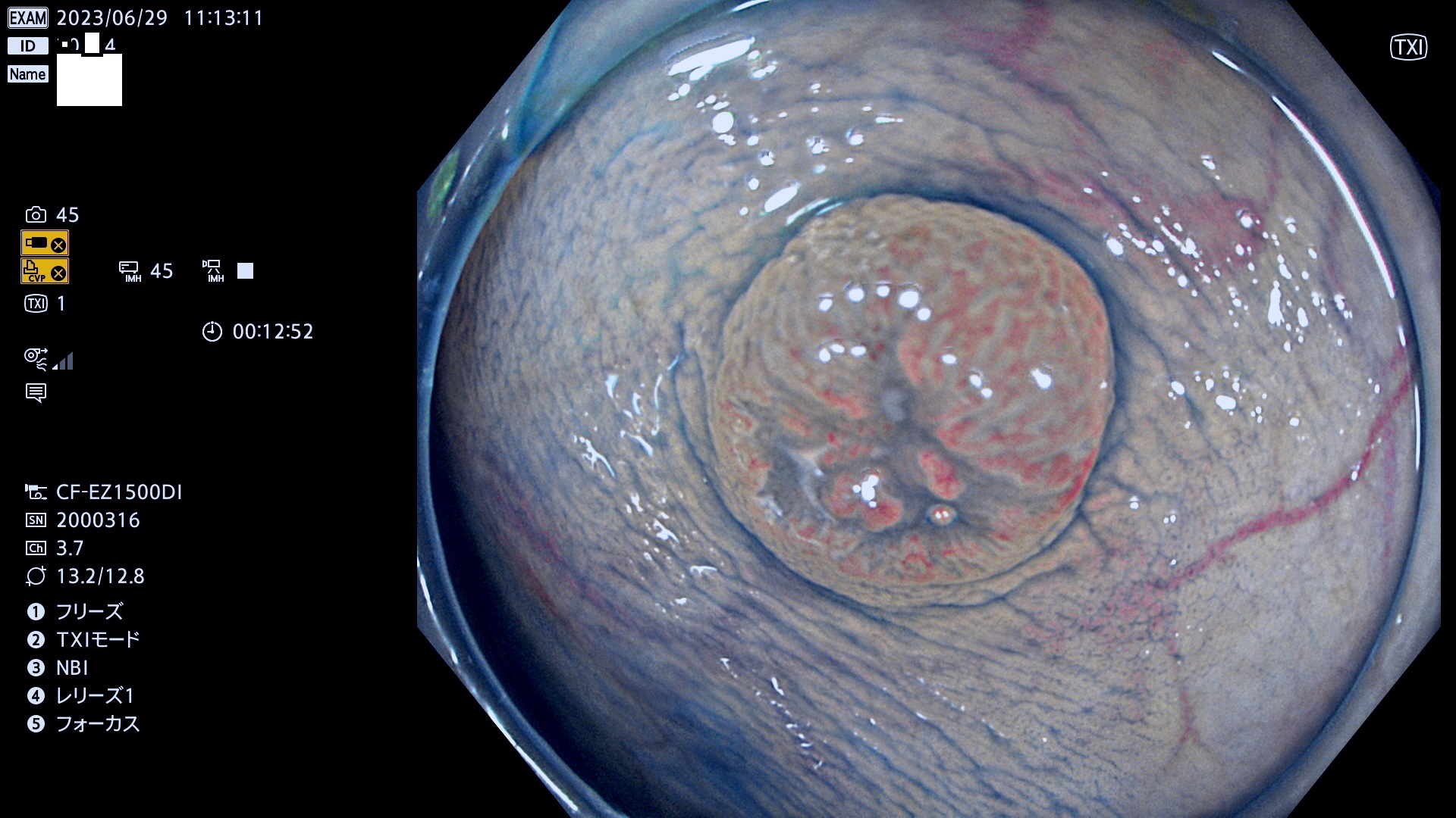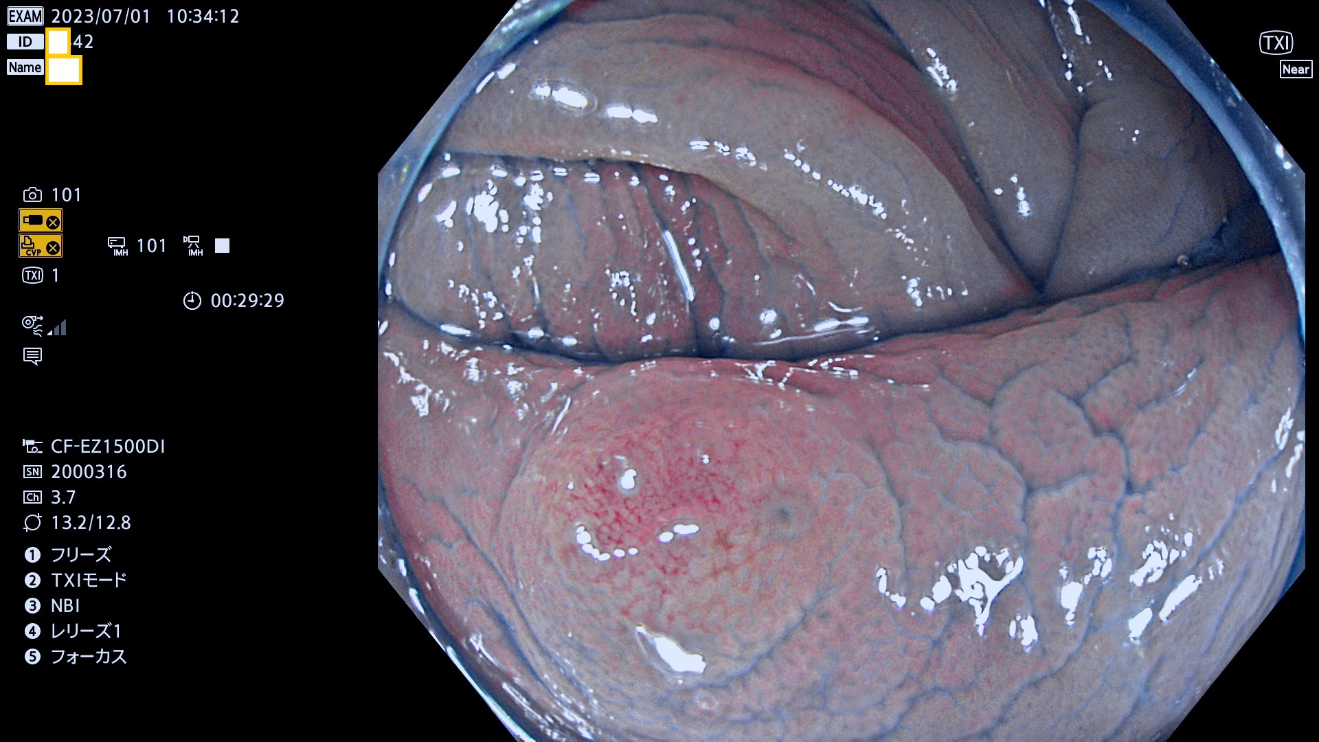 「表面型腫瘍」の中で、完全に平坦な物をUb、陥凹している物をUcと呼びます。平坦隆起型(Ua)よりも、発見が難しく危険な病変です。このタイプの発見率は「腺腫発見率」よりも、遥かに重要な意義があります。