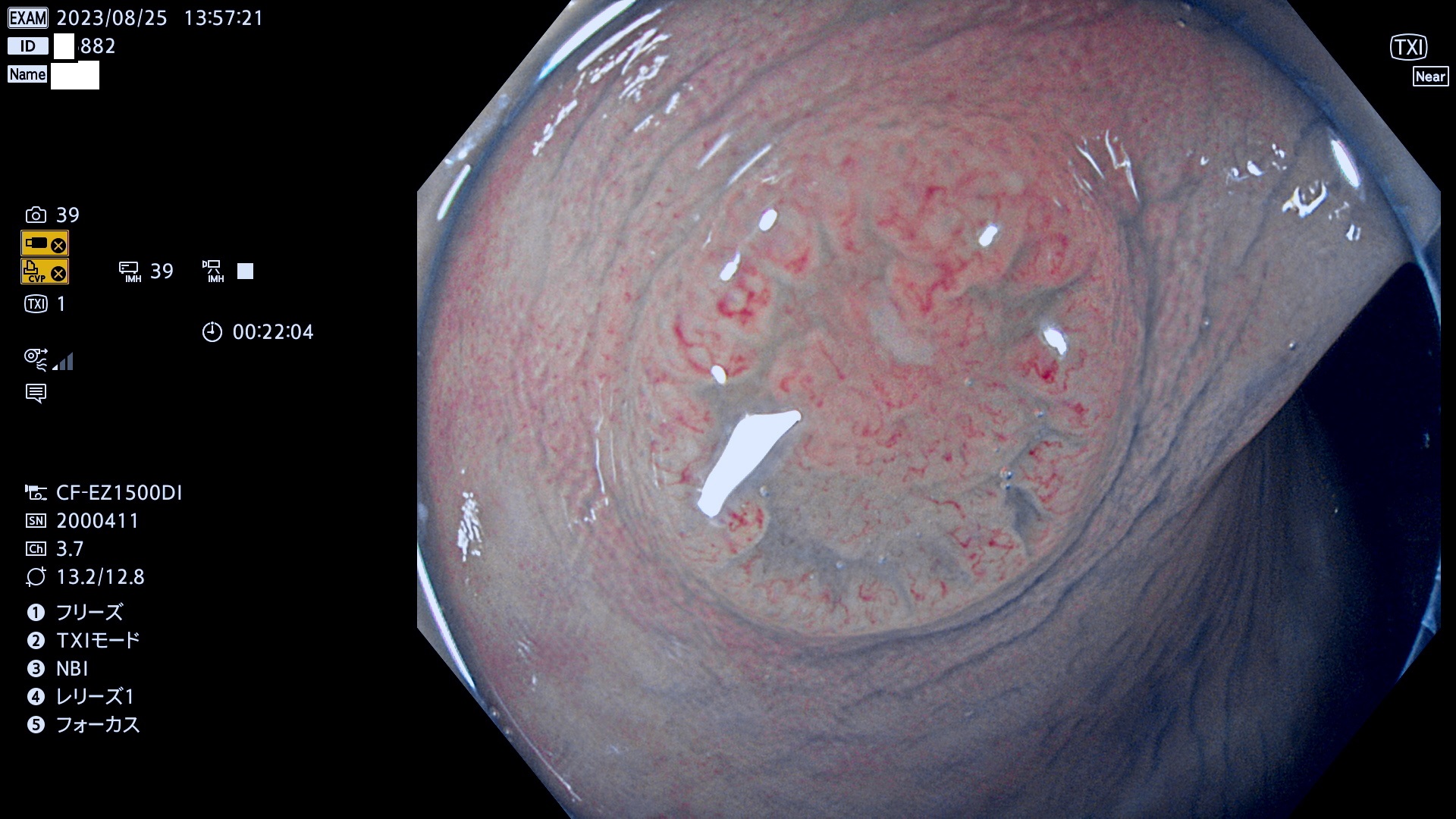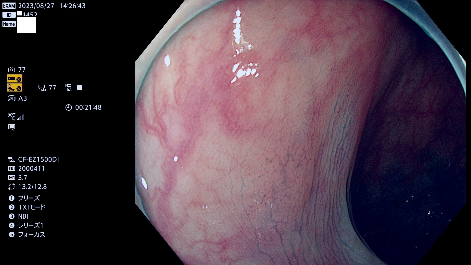 表面型腺腫(Flat Adenoma)の中で、完全に平坦な物をUb、陥凹している物をUcと呼びます。平坦隆起型(Ua)よりも、発見が難しく危険な病変です。このタイプは「内視鏡後・大腸癌の重要犯人」であり、この発見率は「腺腫発見率」よりも、重要な意味があります。