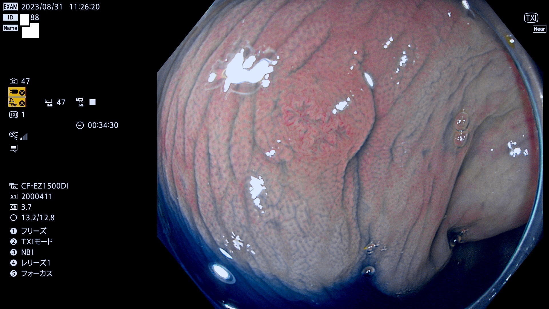表面型腺腫(Flat Adenoma)の中で、完全に平坦な物をUb、陥凹している物をUcと呼びます。平坦隆起型(Ua)よりも、発見が難しく危険な病変です。このタイプは「内視鏡後・大腸癌の重要犯人」であり、この発見率は「腺腫発見率」よりも、重要な意味があります。