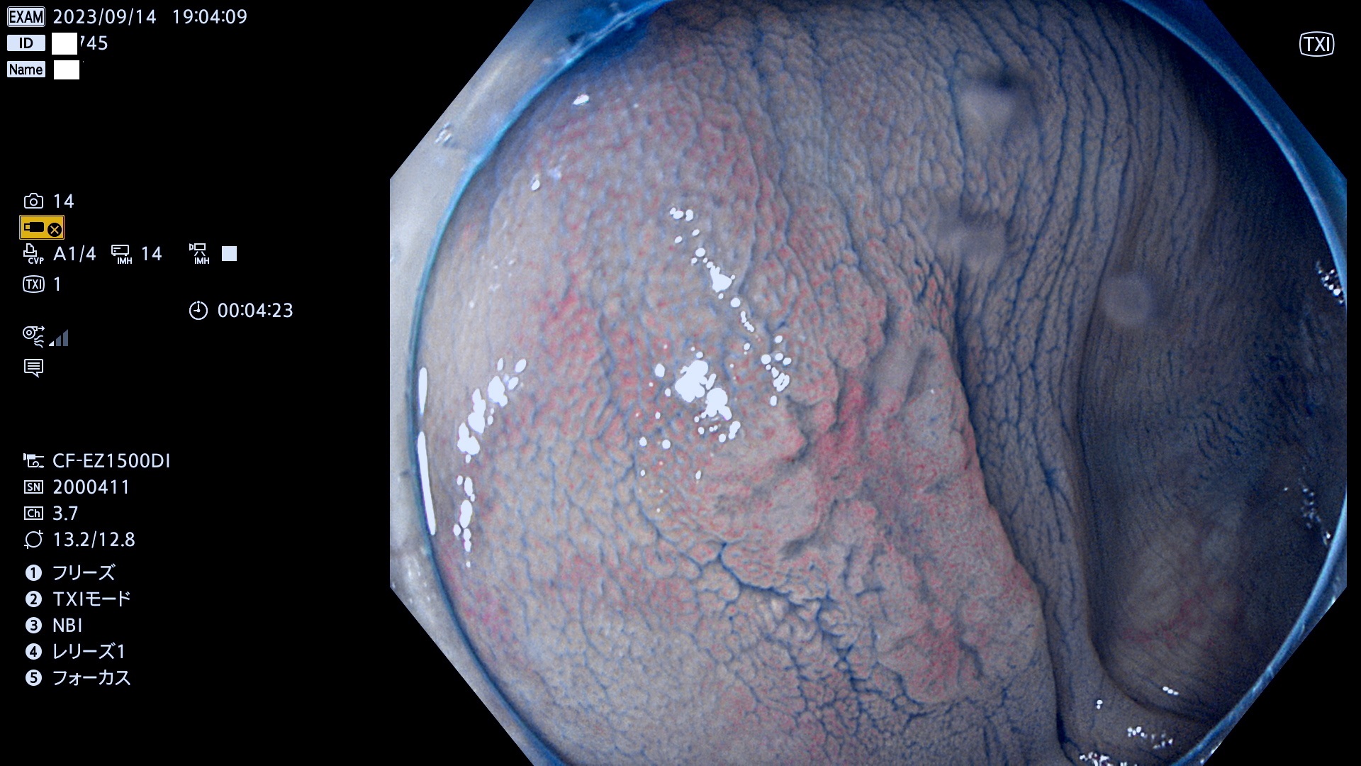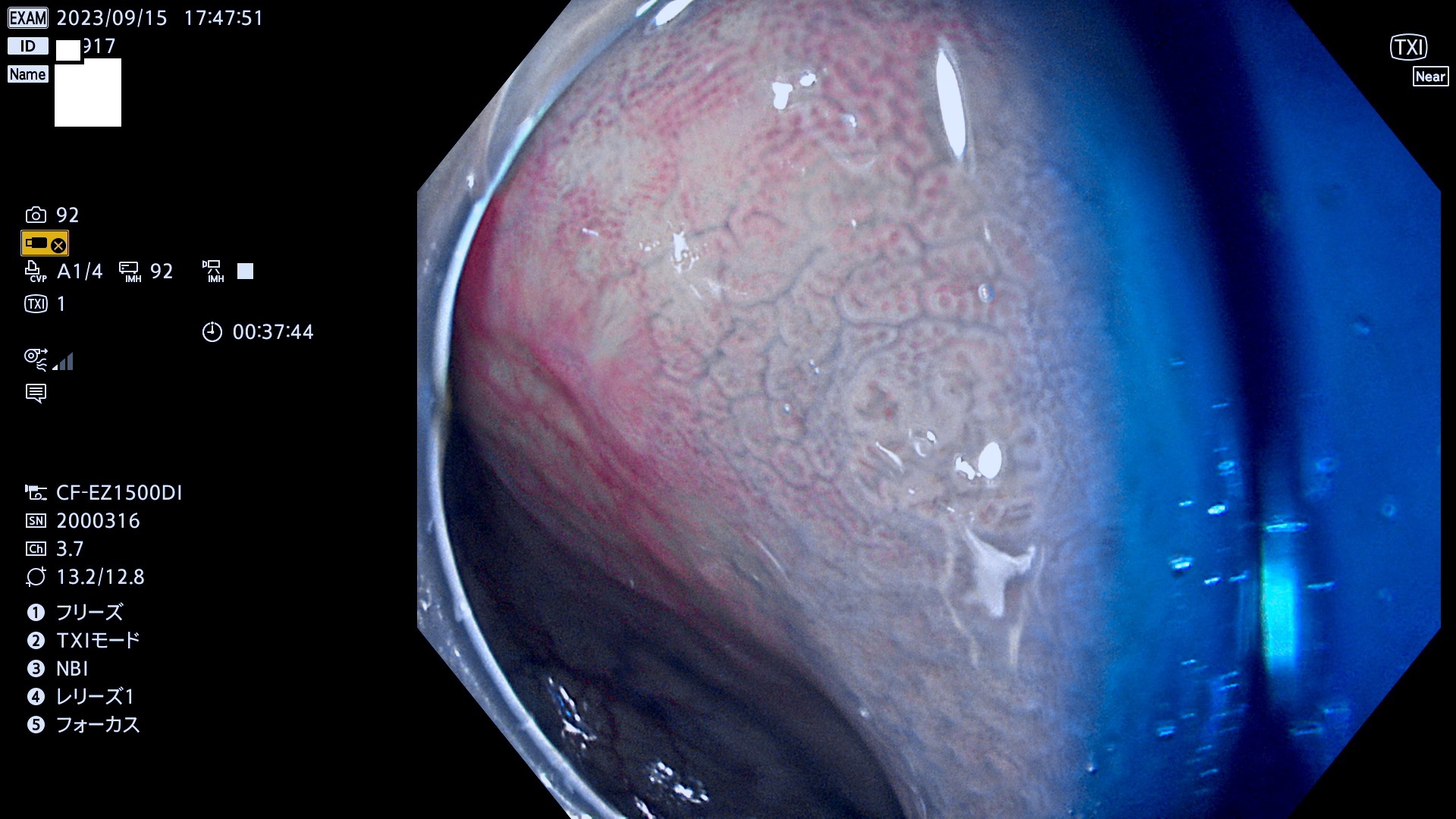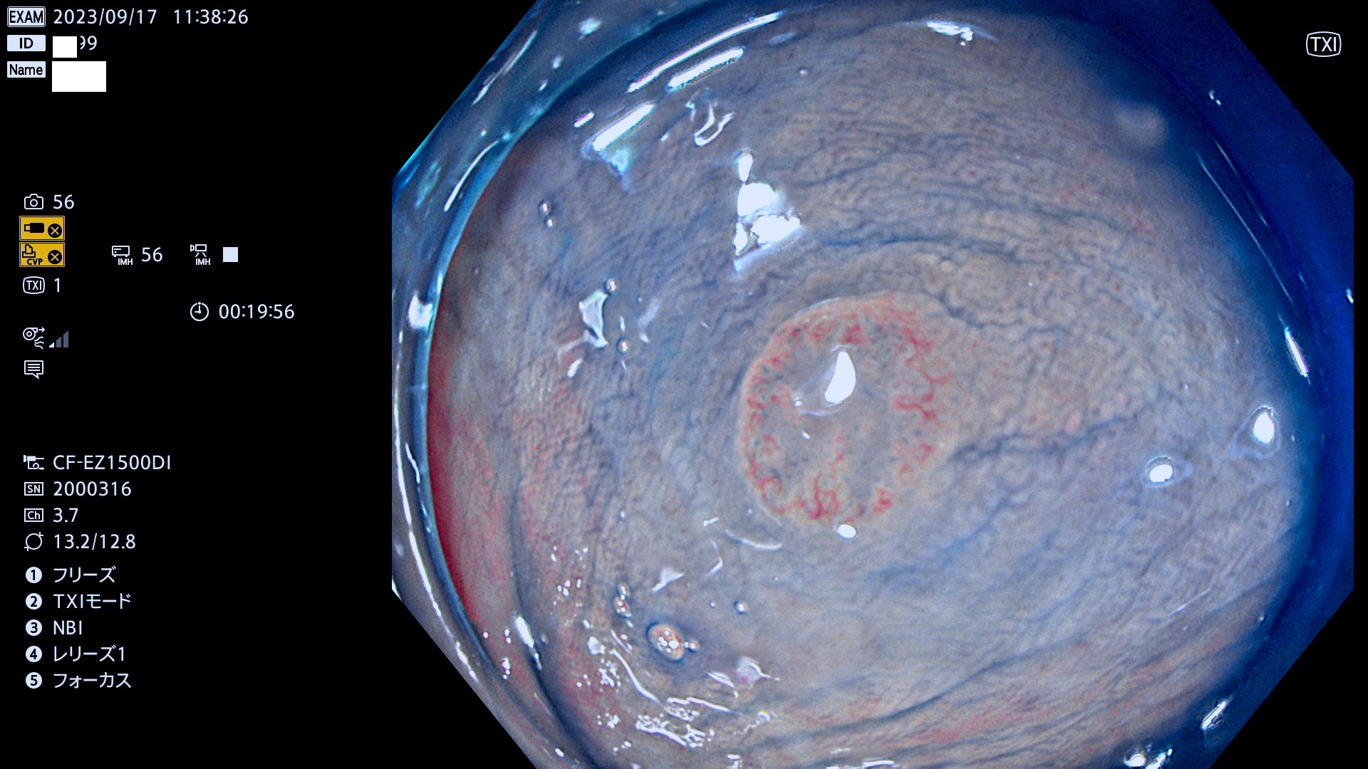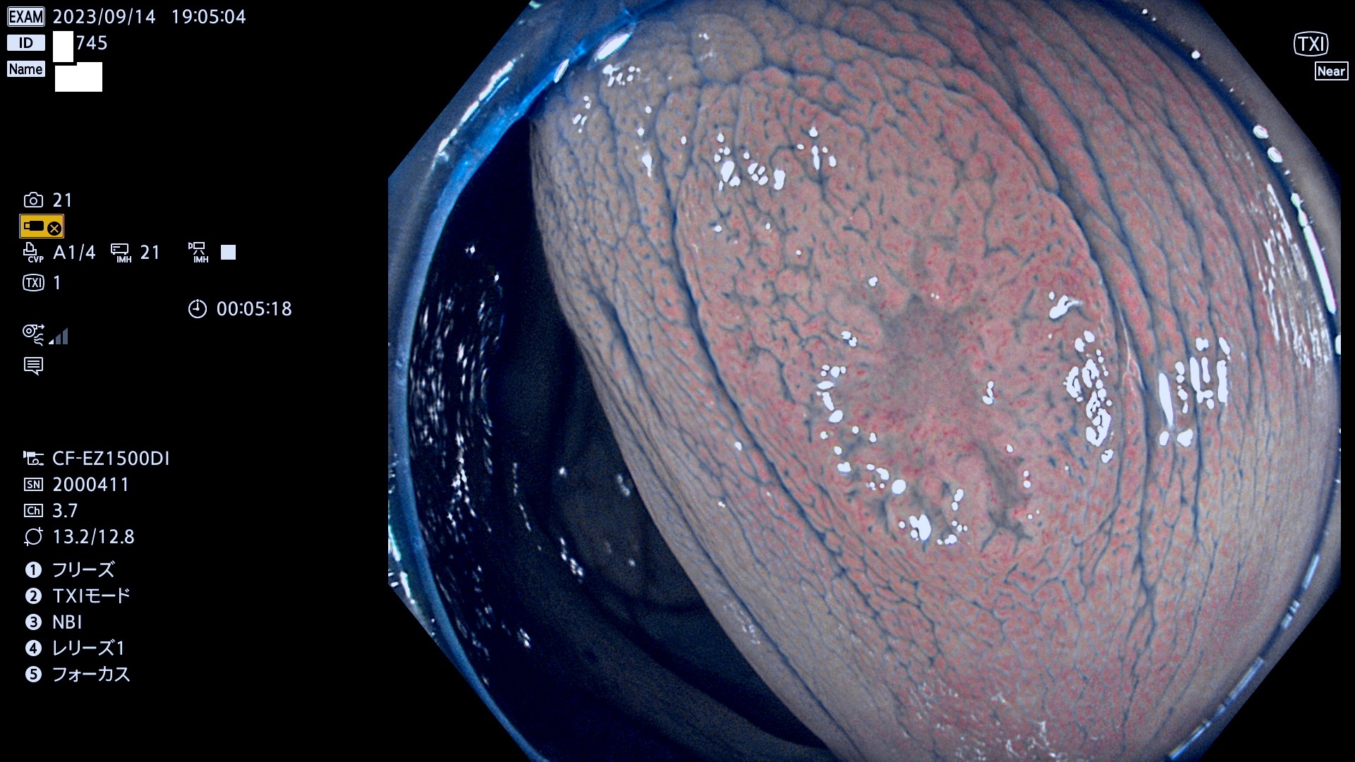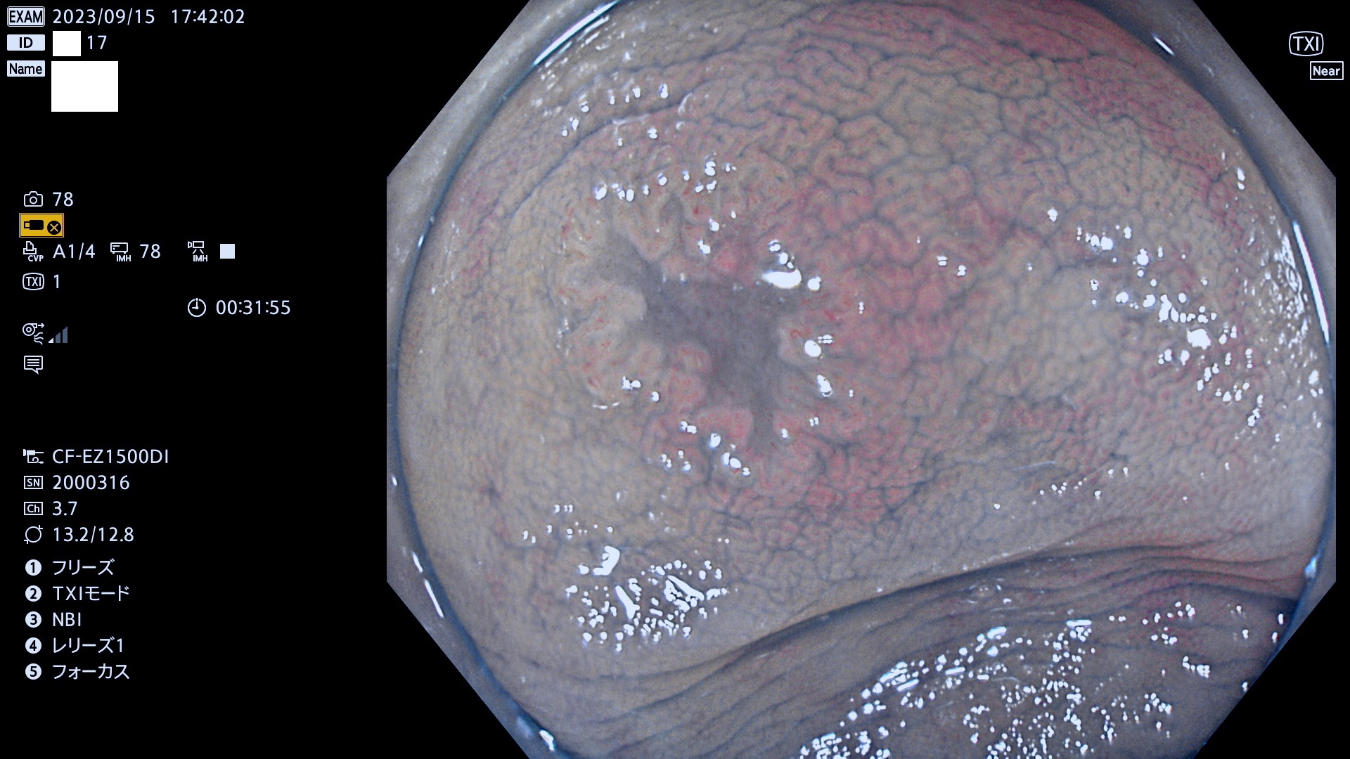 表面型腺腫(Flat Adenoma)の中で、完全に平坦な物をUb、陥凹している物をUcと呼びます。平坦隆起型(Ua)よりも、発見が難しく危険な病変です。このタイプは「内視鏡後・大腸癌の重要犯人」であり、この発見率は「腺腫発見率」よりも、重要な意味があります。