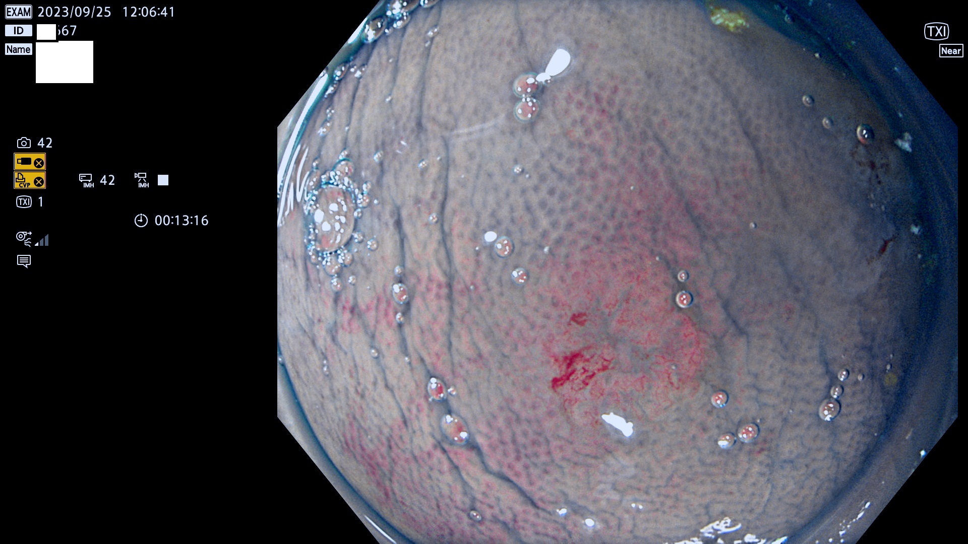 表面型腺腫(Flat Adenoma)の中で、完全に平坦な物をUb、陥凹している物をUcと呼びます。平坦隆起型(Ua)よりも、発見が難しく危険な病変です。このタイプは「内視鏡後・大腸癌の重要犯人」であり、この発見率は「腺腫発見率」よりも、重要な意味があります。