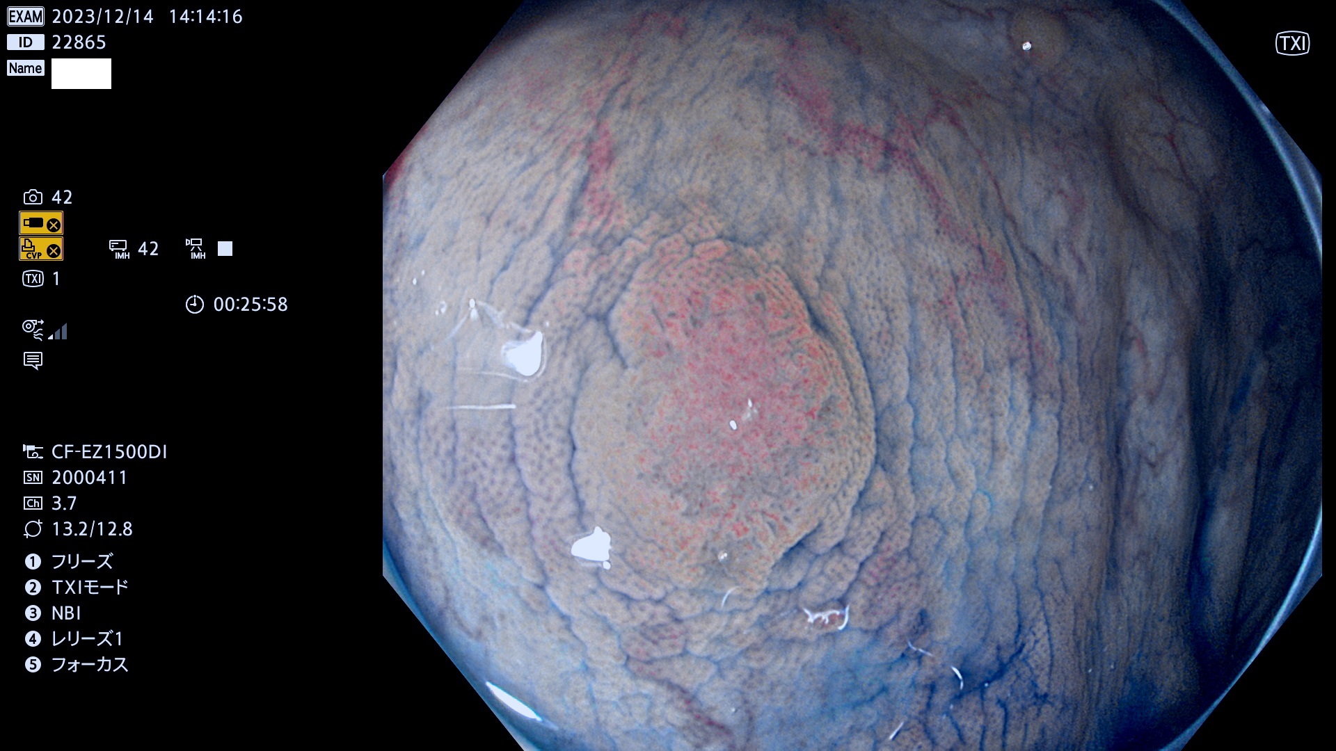 表面型腺腫(Flat Adenoma)の中で、完全に平坦な物をUb、陥凹している物をUcと呼びます。平坦隆起型(Ua)よりも、発見が難しく危険な病変です。このタイプは「内視鏡後・大腸癌の重要犯人」であり、この発見率は「腺腫発見率」よりも、重要な意味があります。