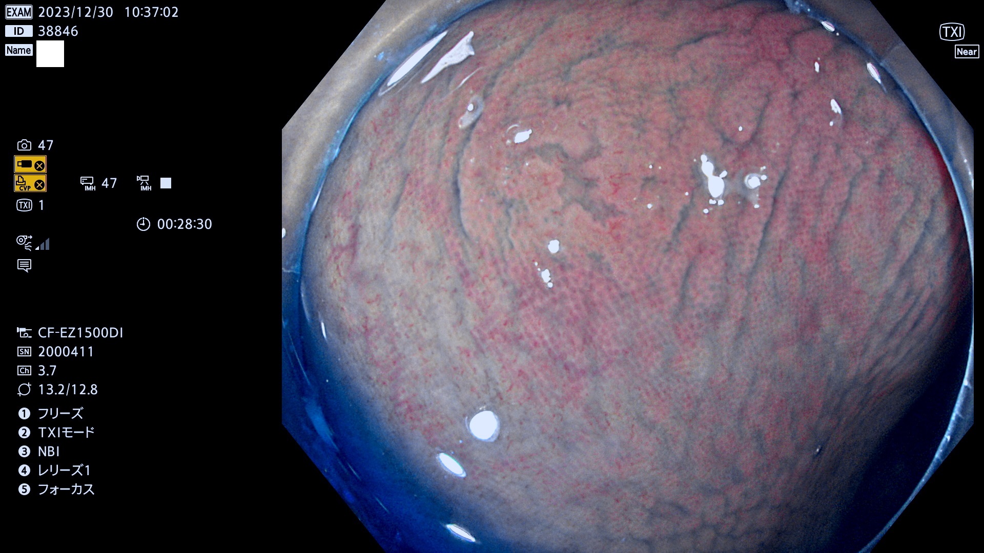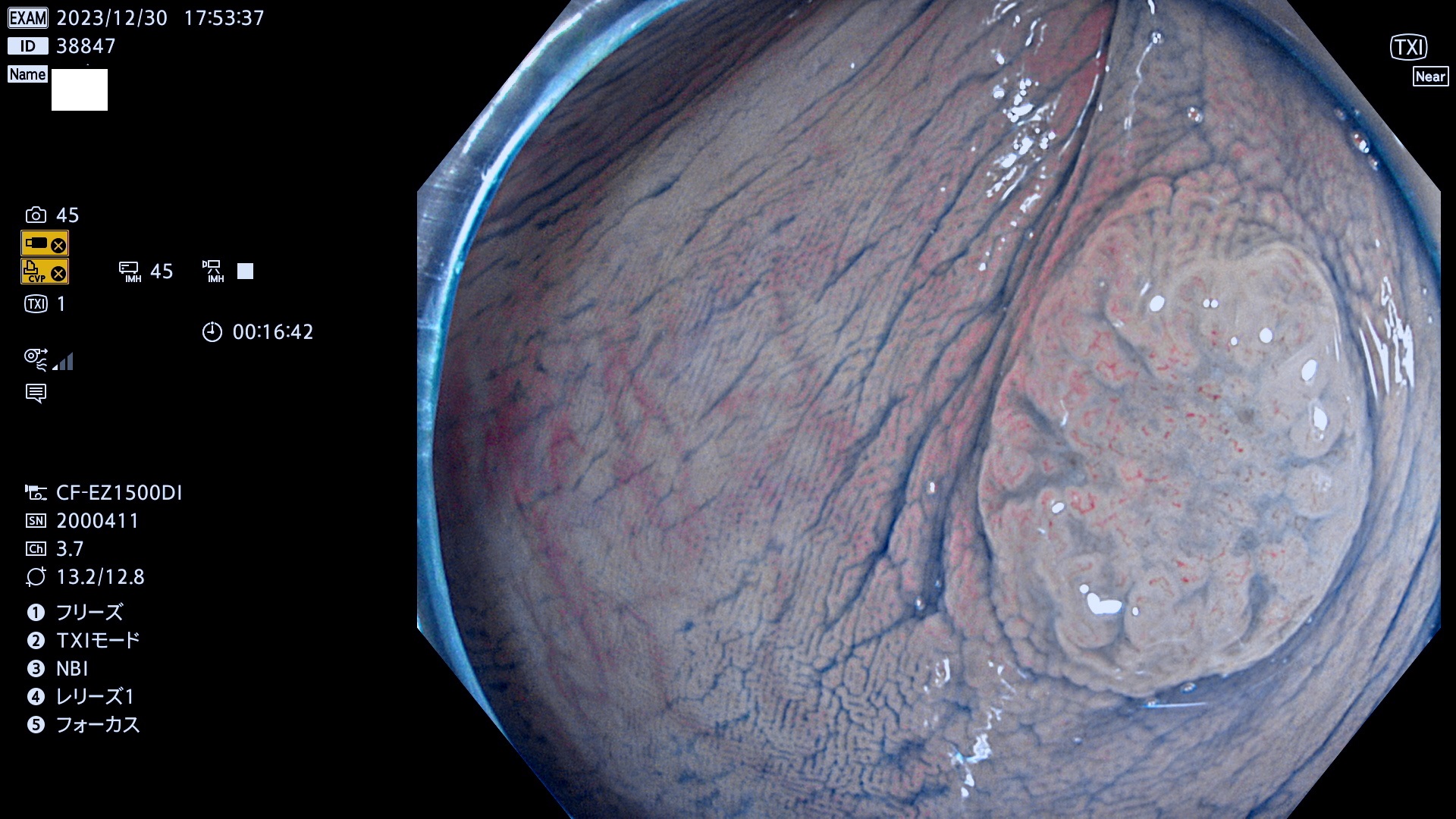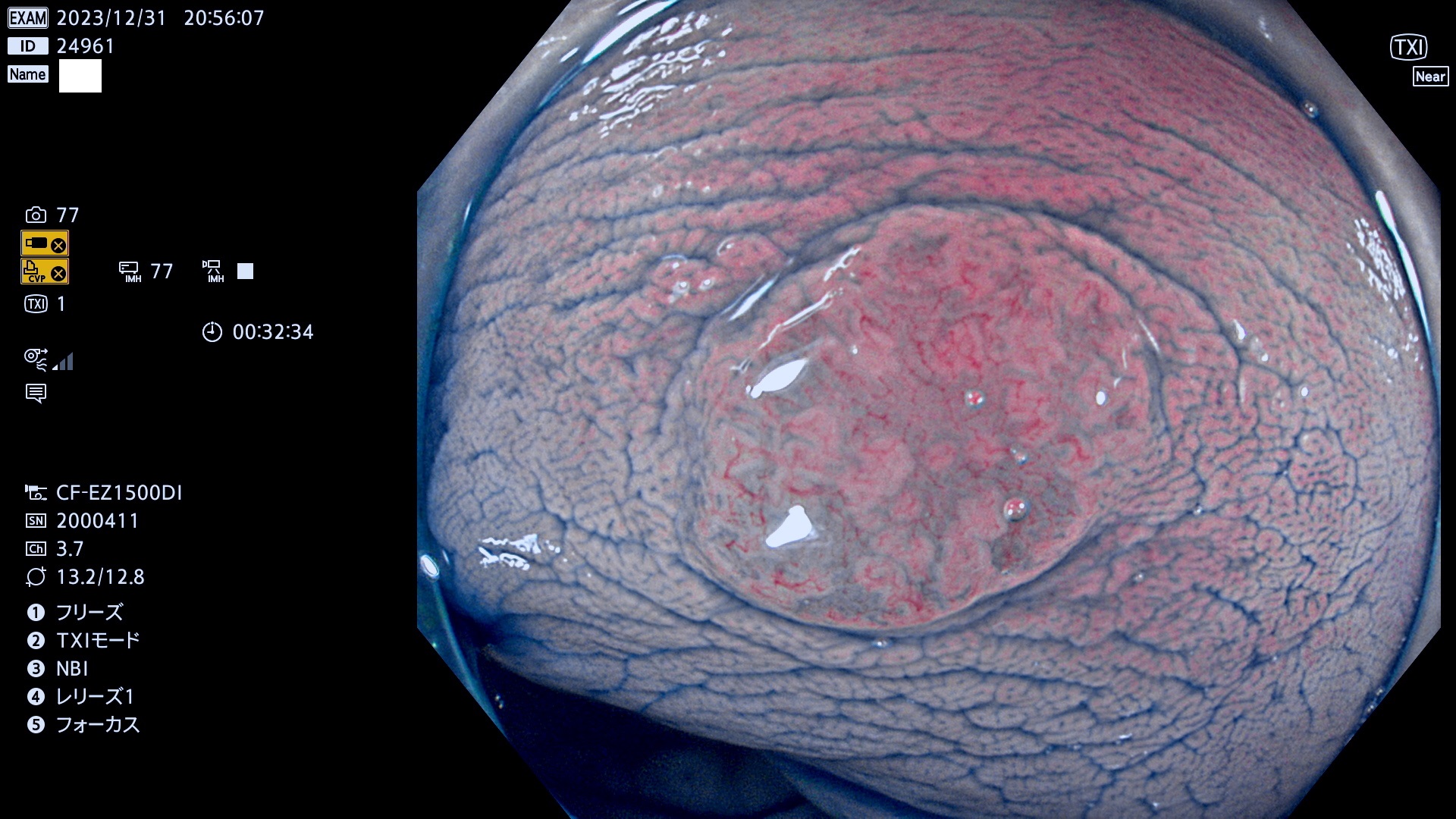 表面型腺腫(Flat Adenoma)の中で、完全に平坦な物をUb、陥凹している物をUcと呼びます。平坦隆起型(Ua)よりも、発見が難しく危険な病変です。