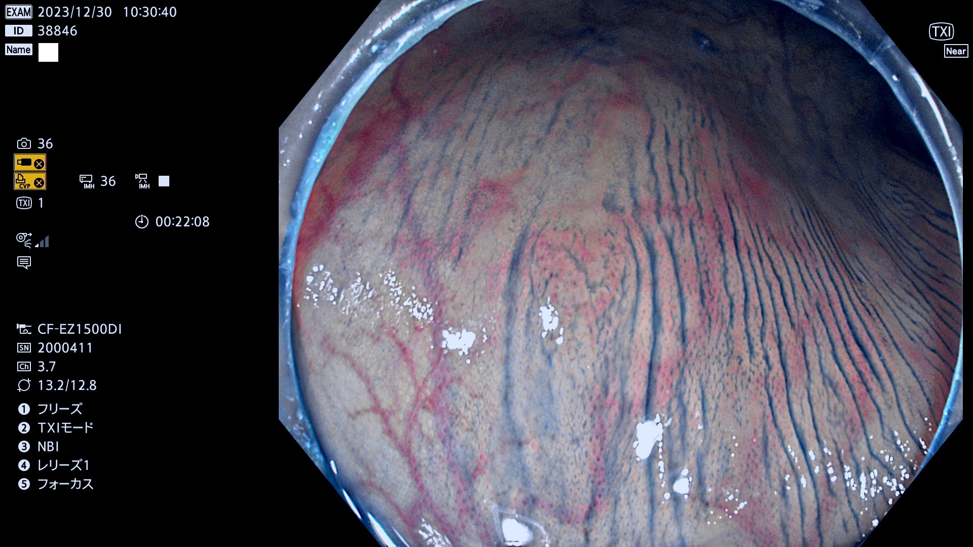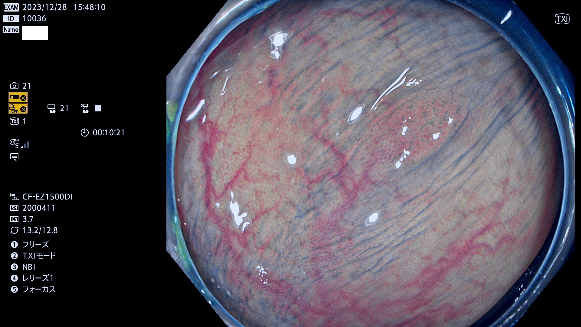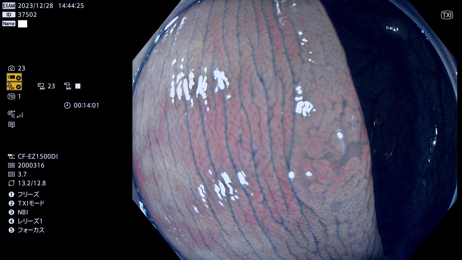表面型腺腫(Flat Adenoma)の中で、完全に平坦な物をUb、陥凹している物をUcと呼びます。平坦隆起型(Ua)よりも、発見が難しく危険な病変です。