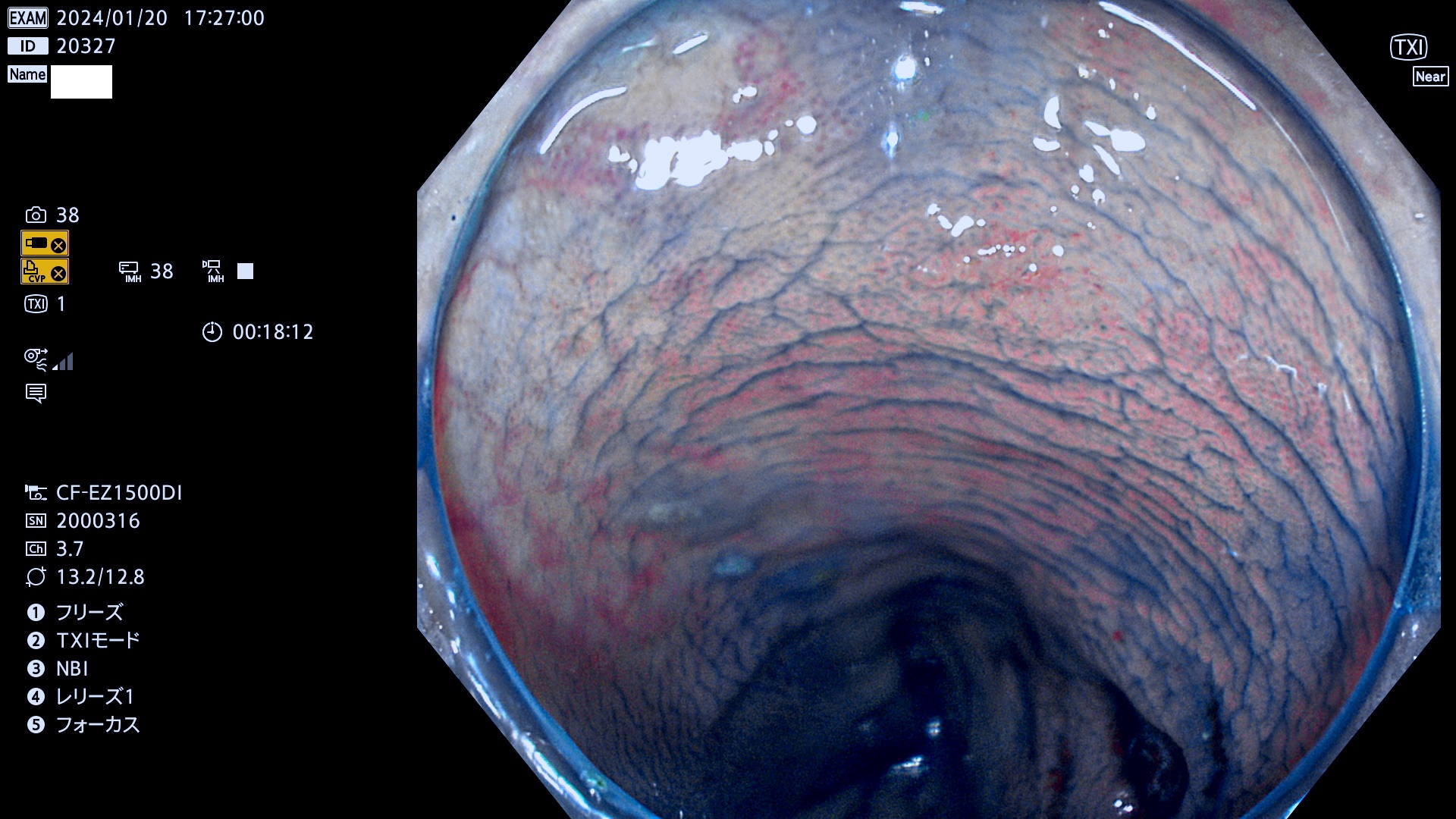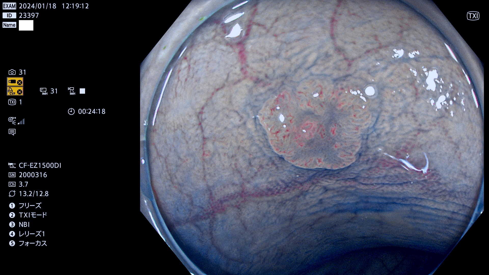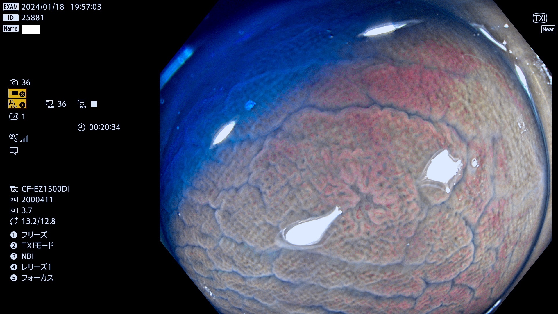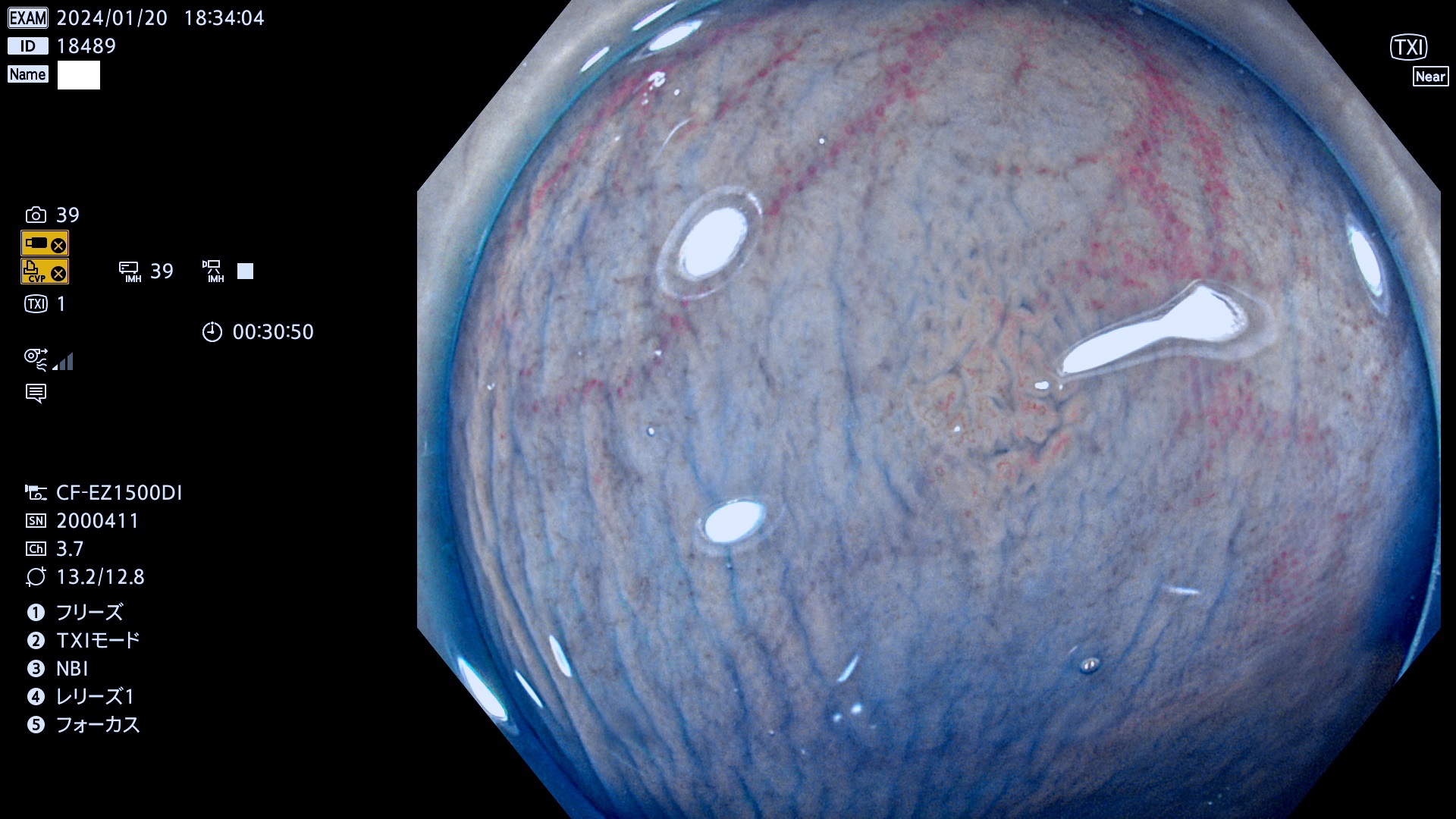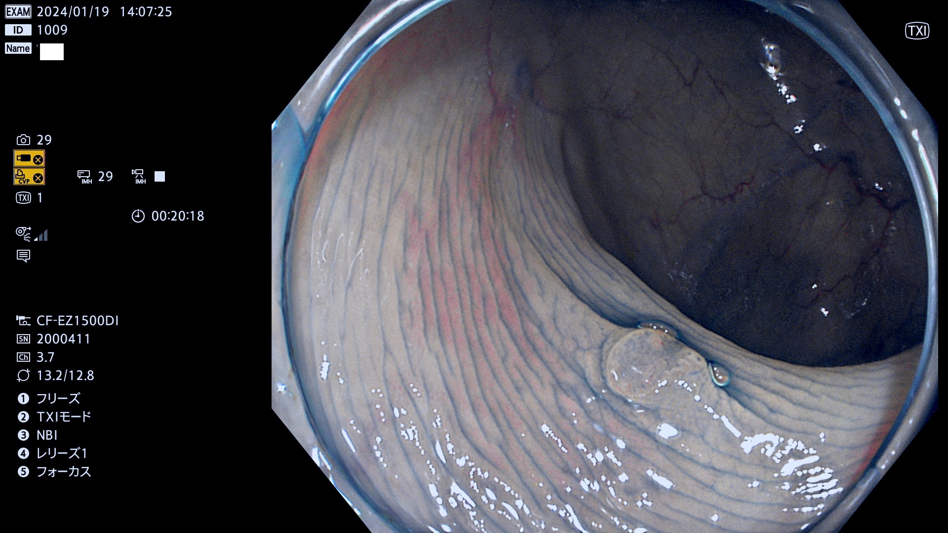 表面型腺腫(Flat Adenoma)の中で、完全に平坦な物をUb、陥凹している物をUcと呼びます。平坦隆起型(Ua)よりも、発見が難しく危険な病変です。