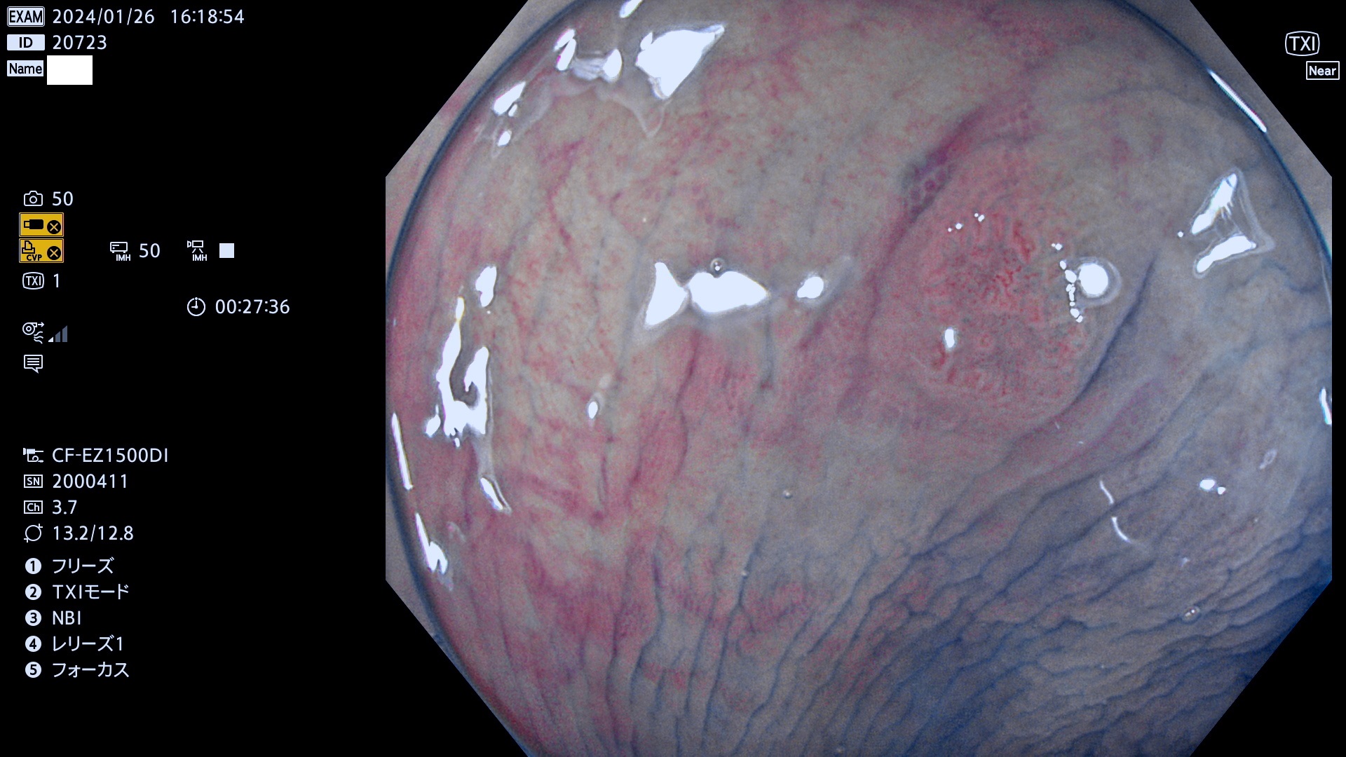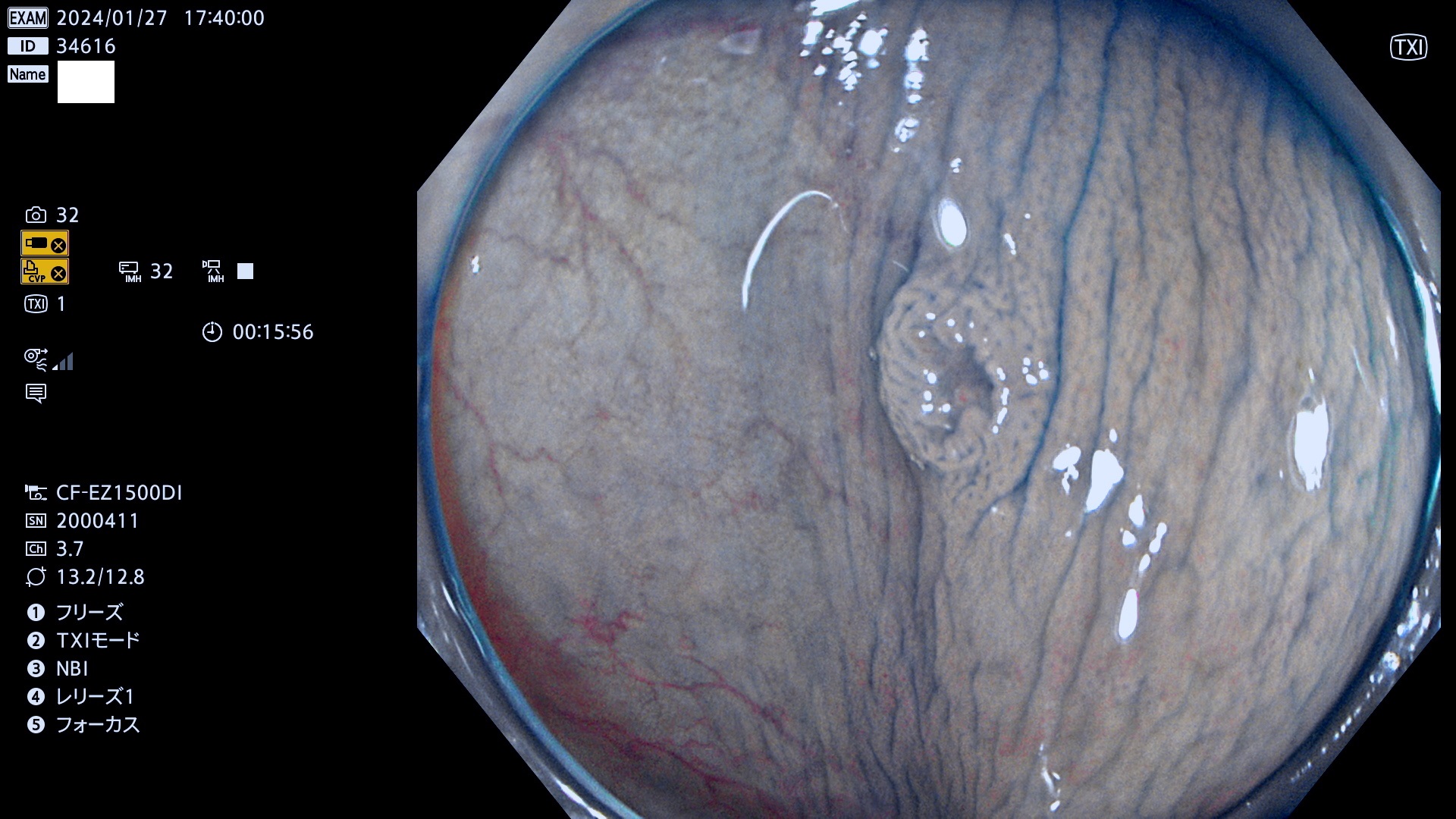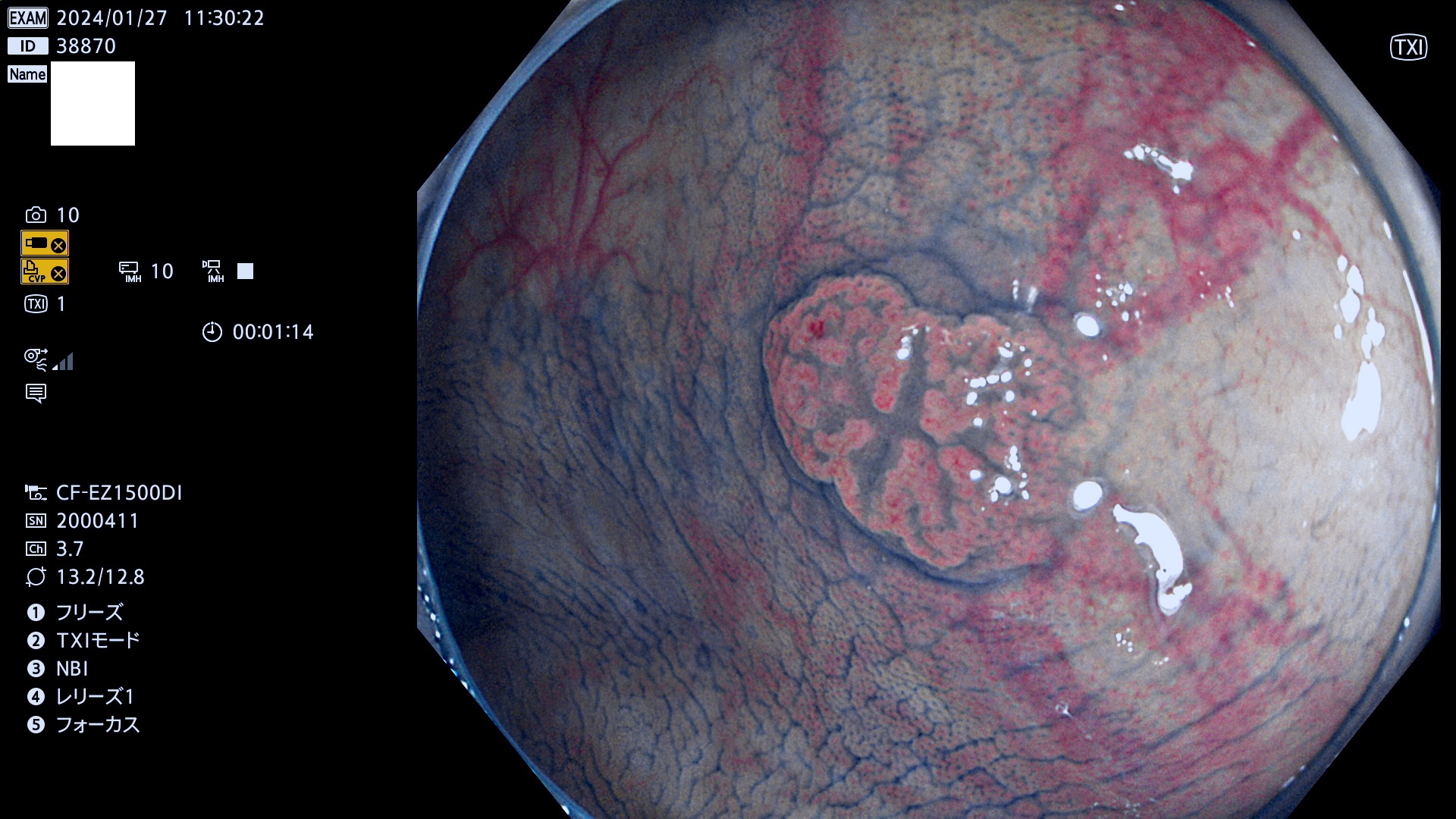表面型腺腫(Flat Adenoma)の中で、完全に平坦な物をUb、陥凹している物をUcと呼びます。平坦隆起型(Ua)よりも、発見が難しく危険な病変です。