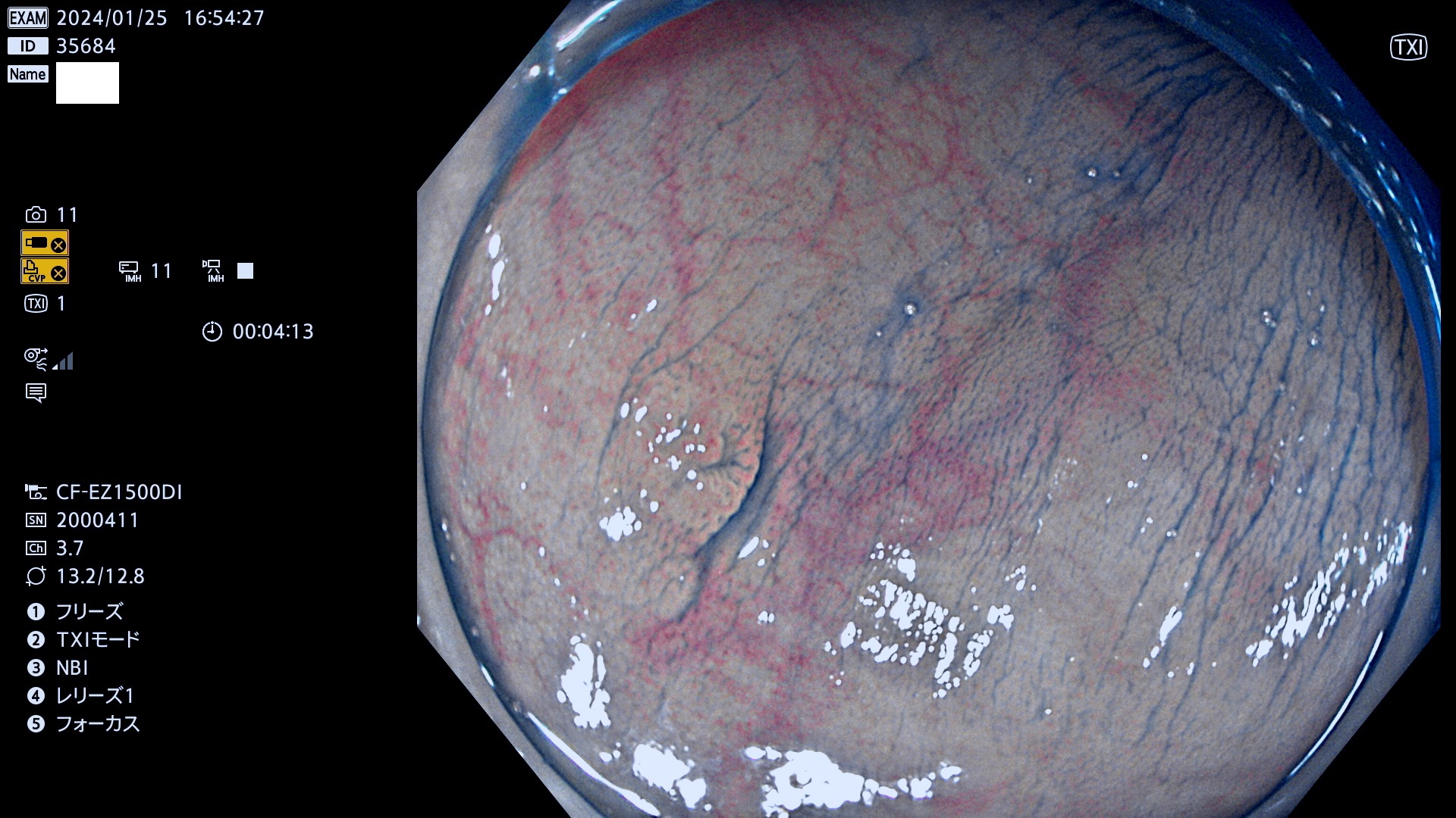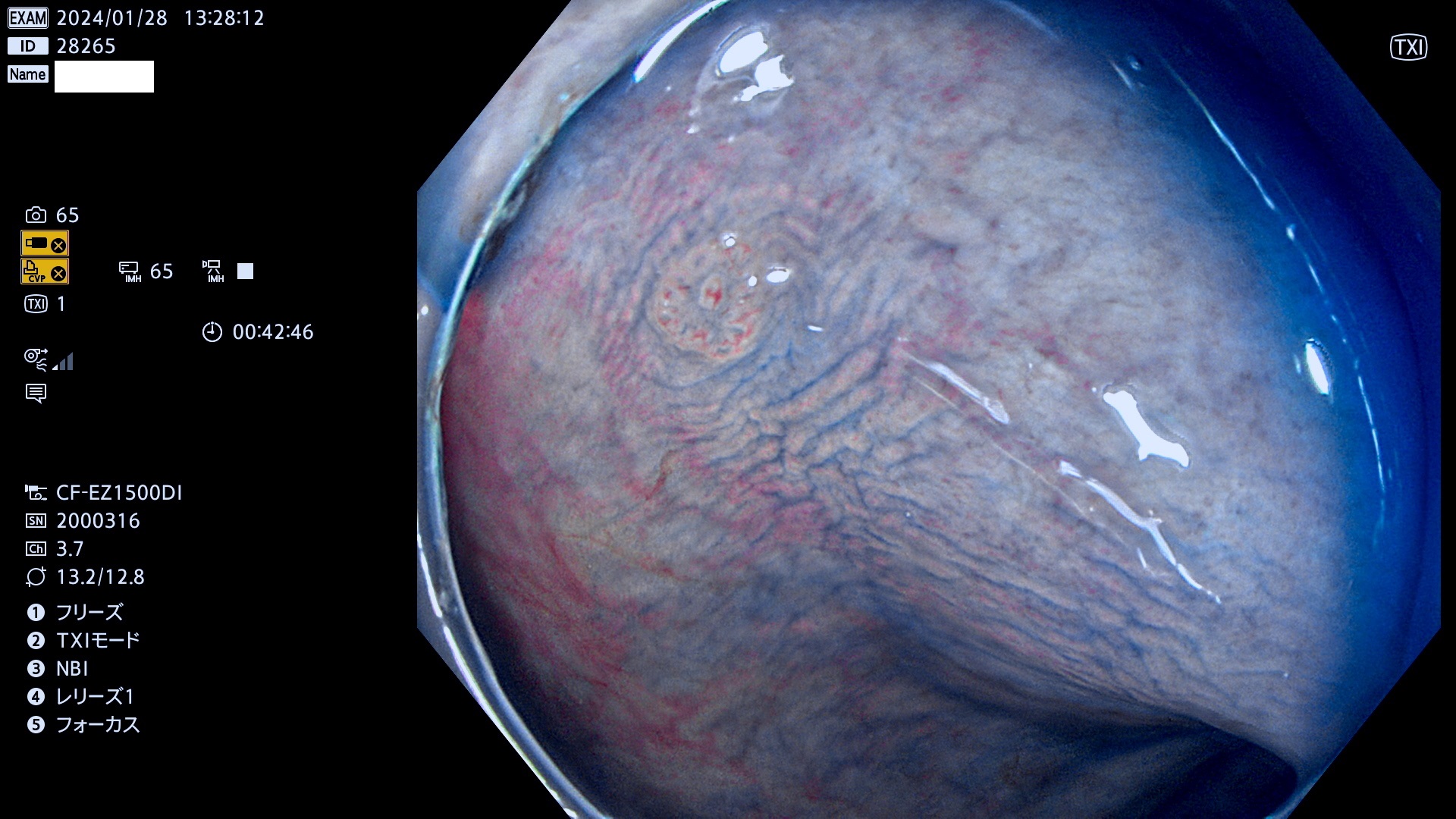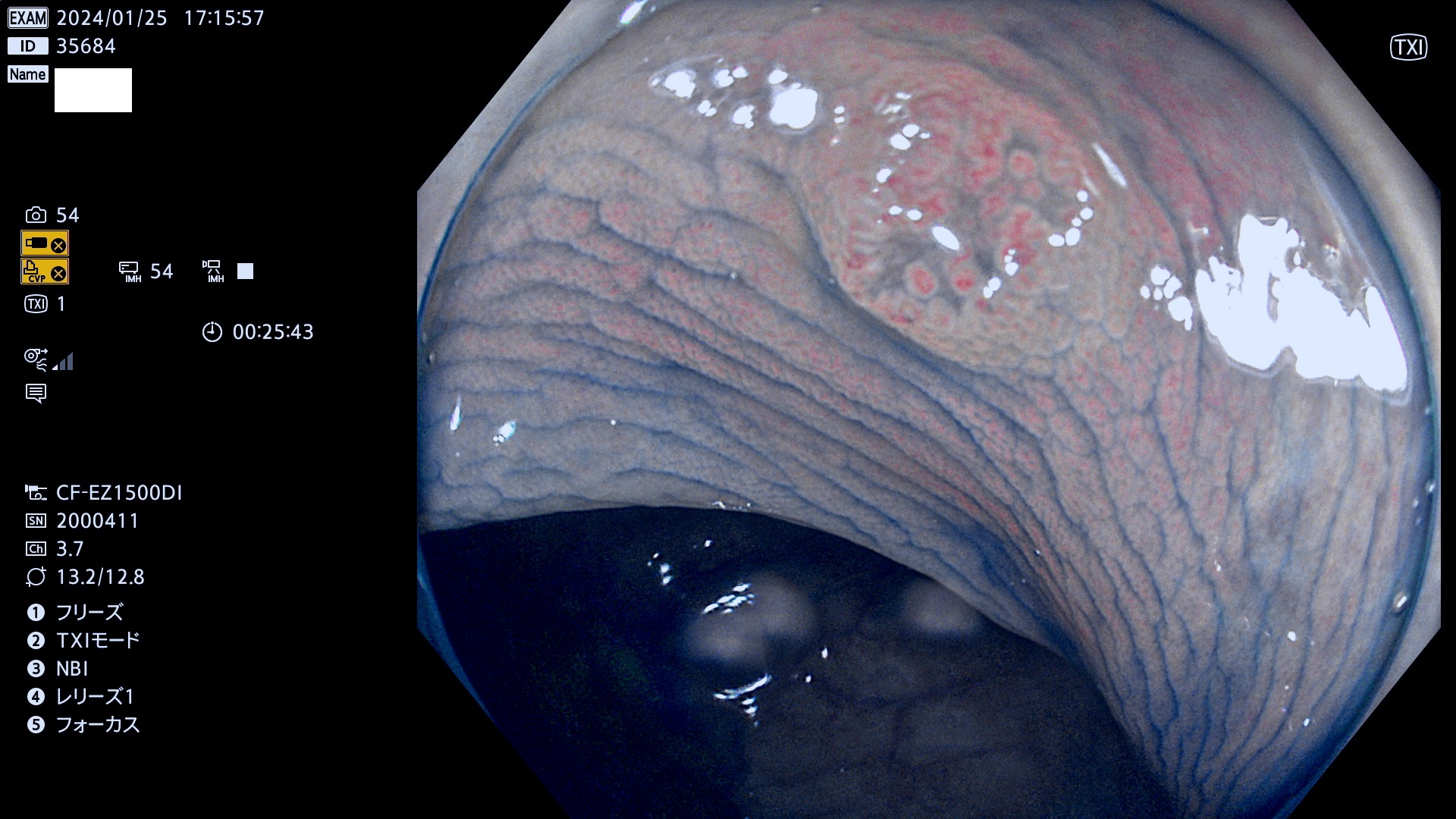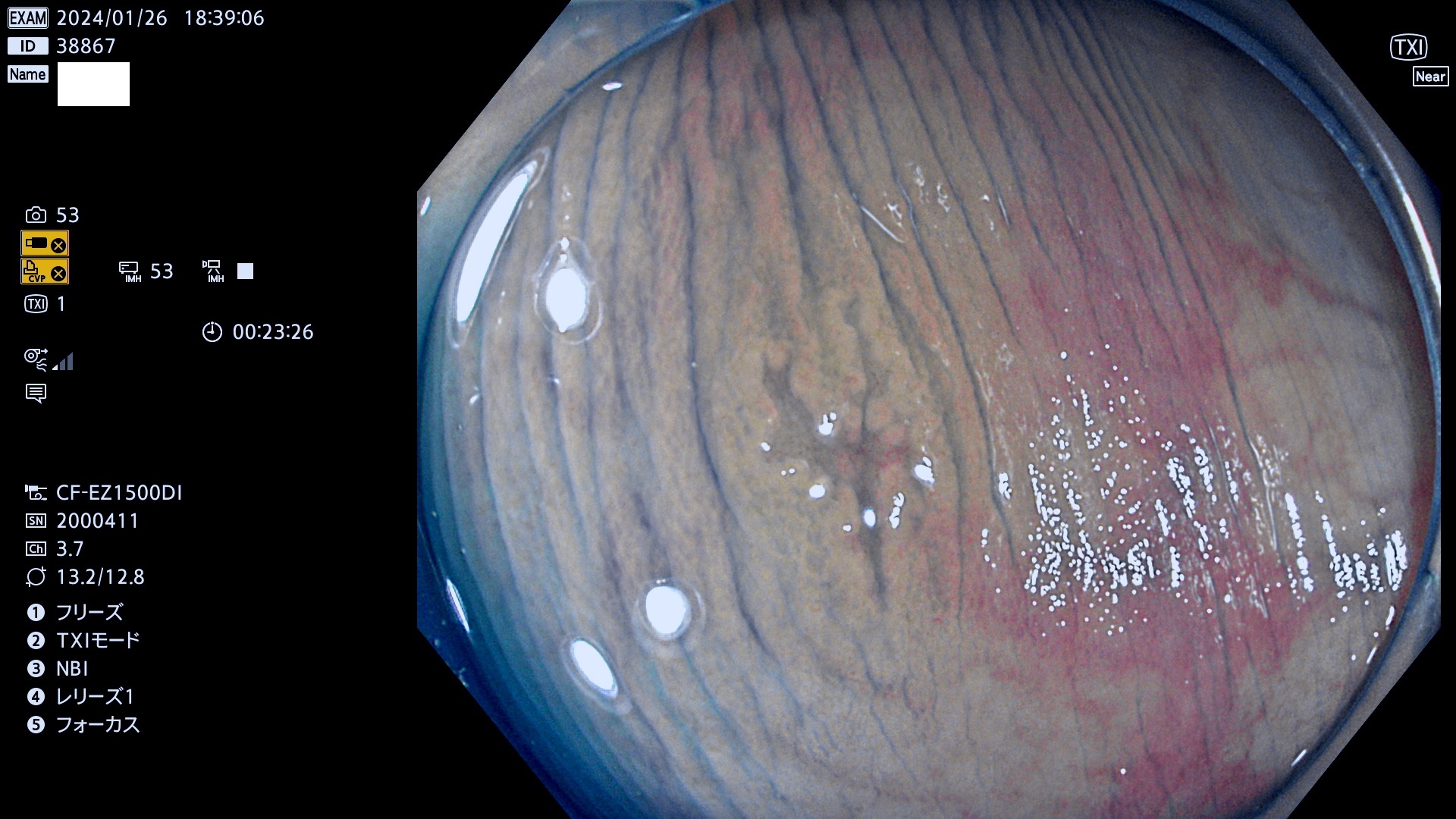 表面型腺腫(Flat Adenoma)の中で、完全に平坦な物をUb、陥凹している物をUcと呼びます。平坦隆起型(Ua)よりも、発見が難しく危険な病変です。
