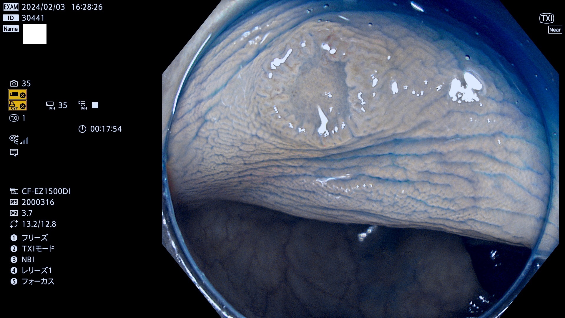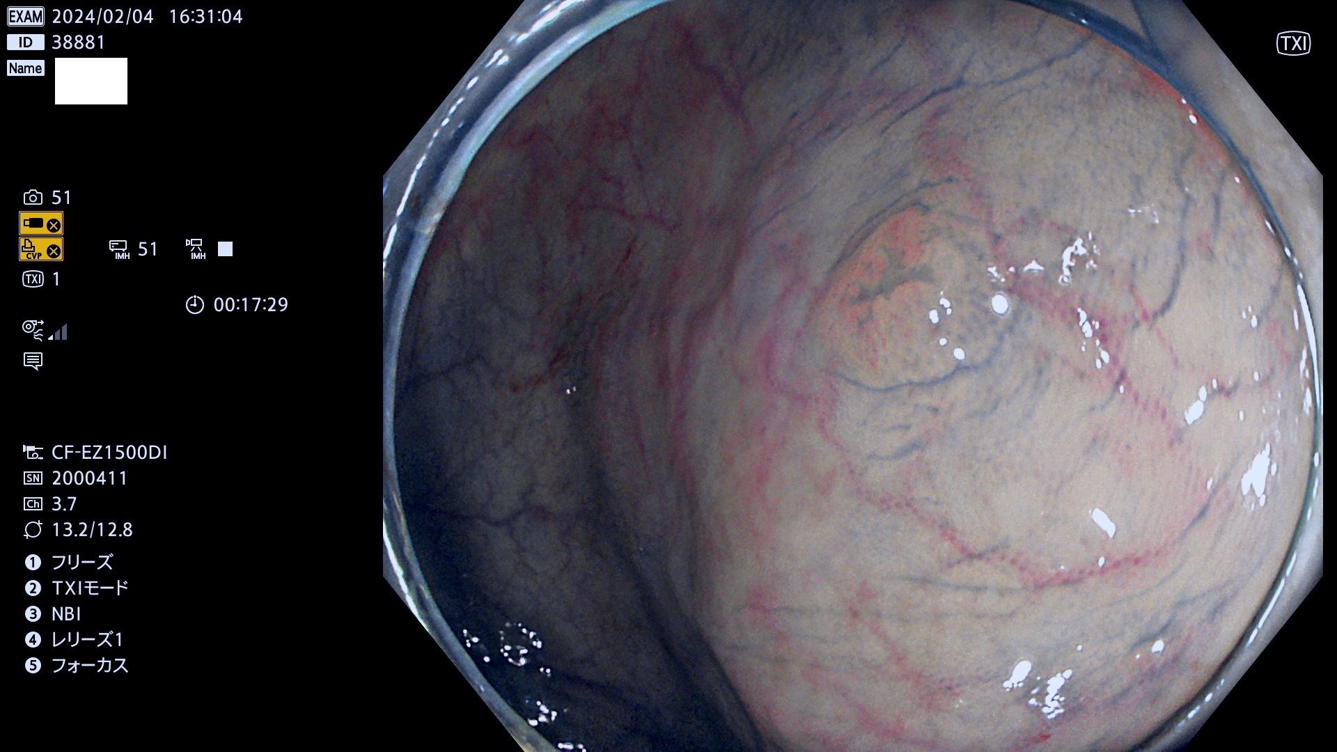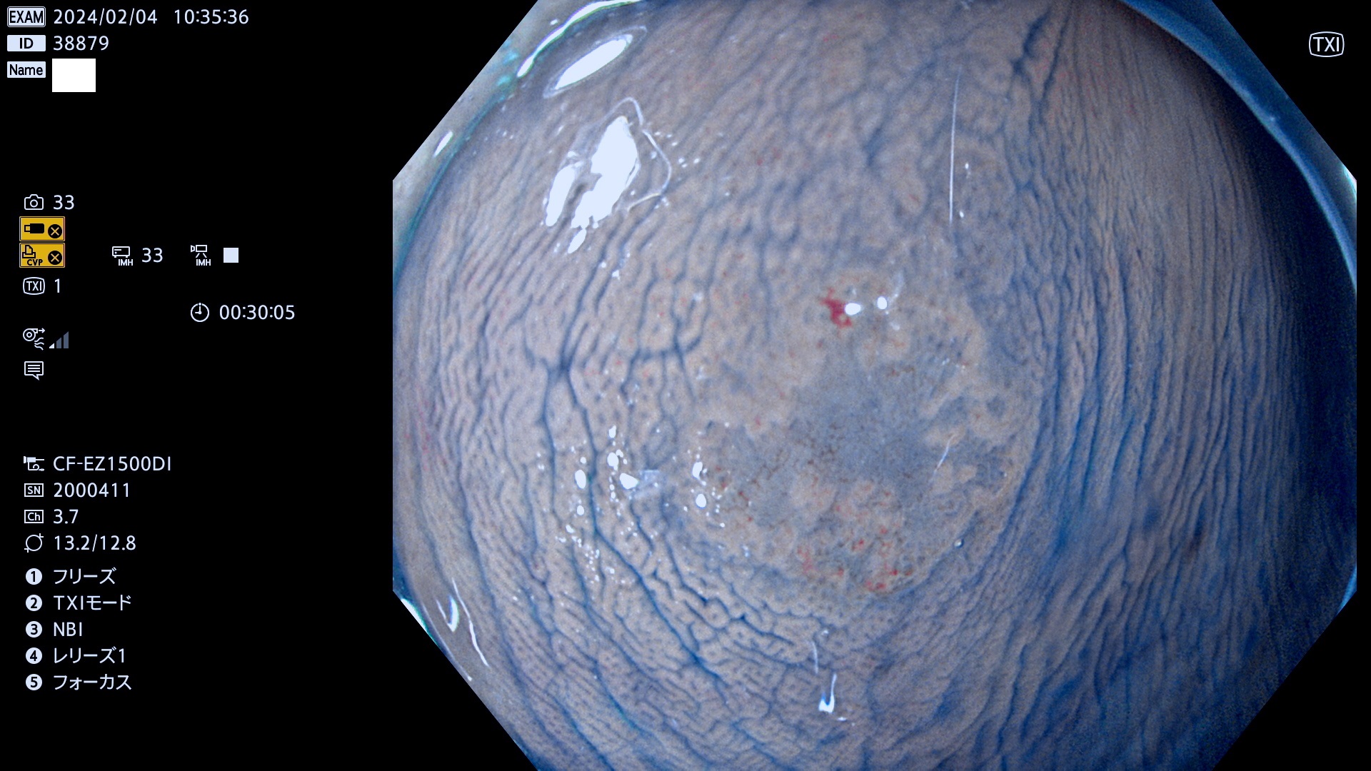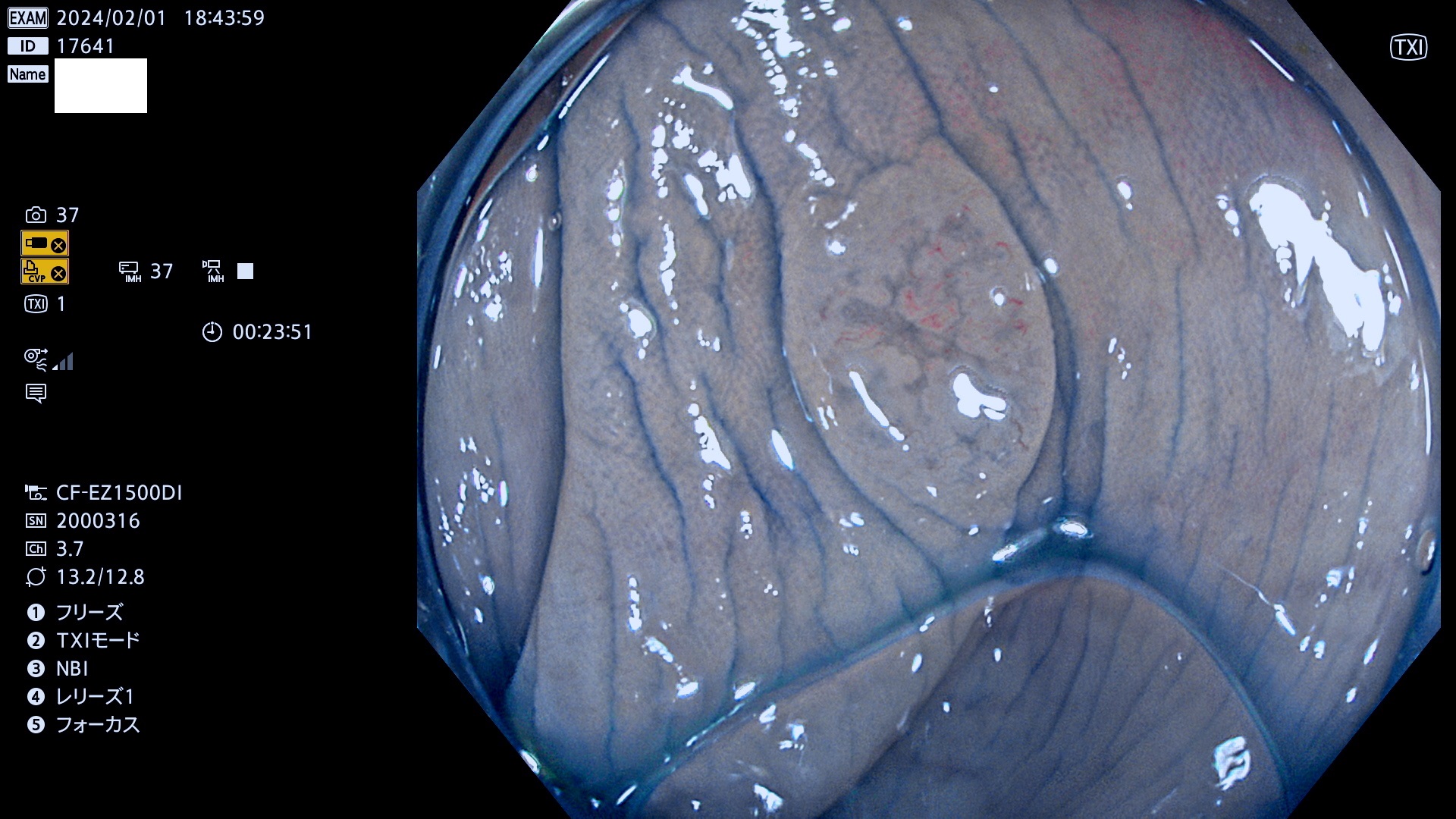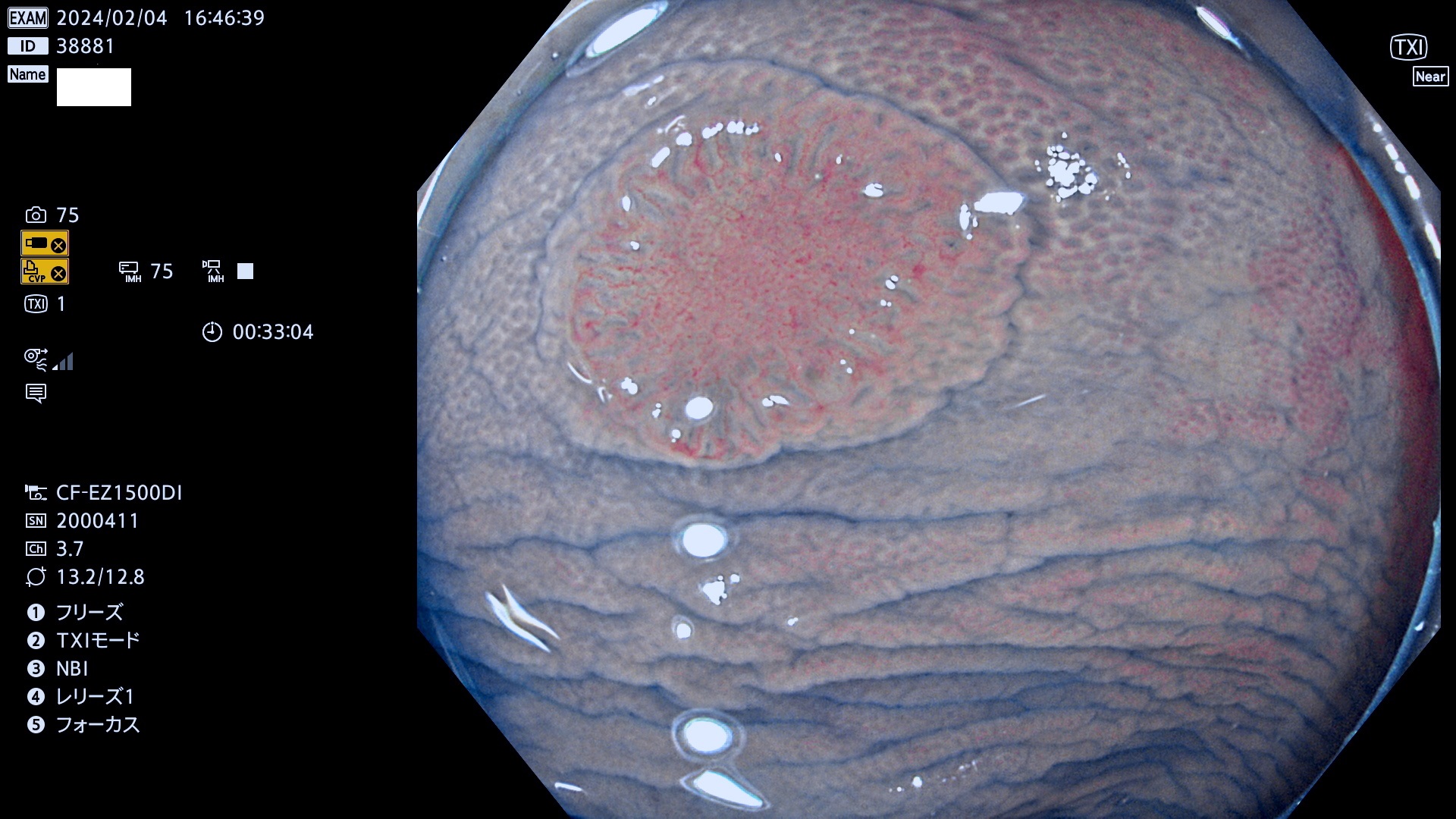 表面型腺腫(Flat Adenoma)の中で、完全に平坦な物をUb、陥凹している物をUcと呼びます。平坦隆起型(Ua)よりも、発見が難しく危険な病変です。