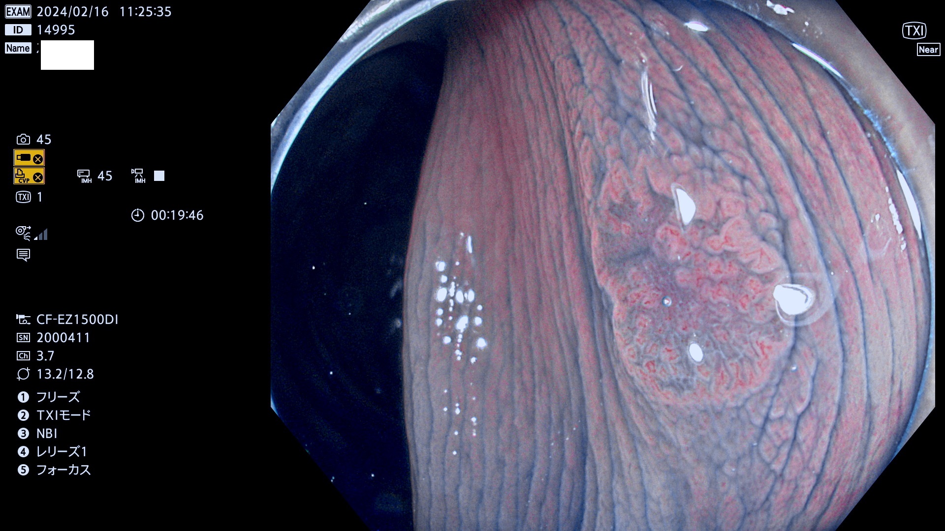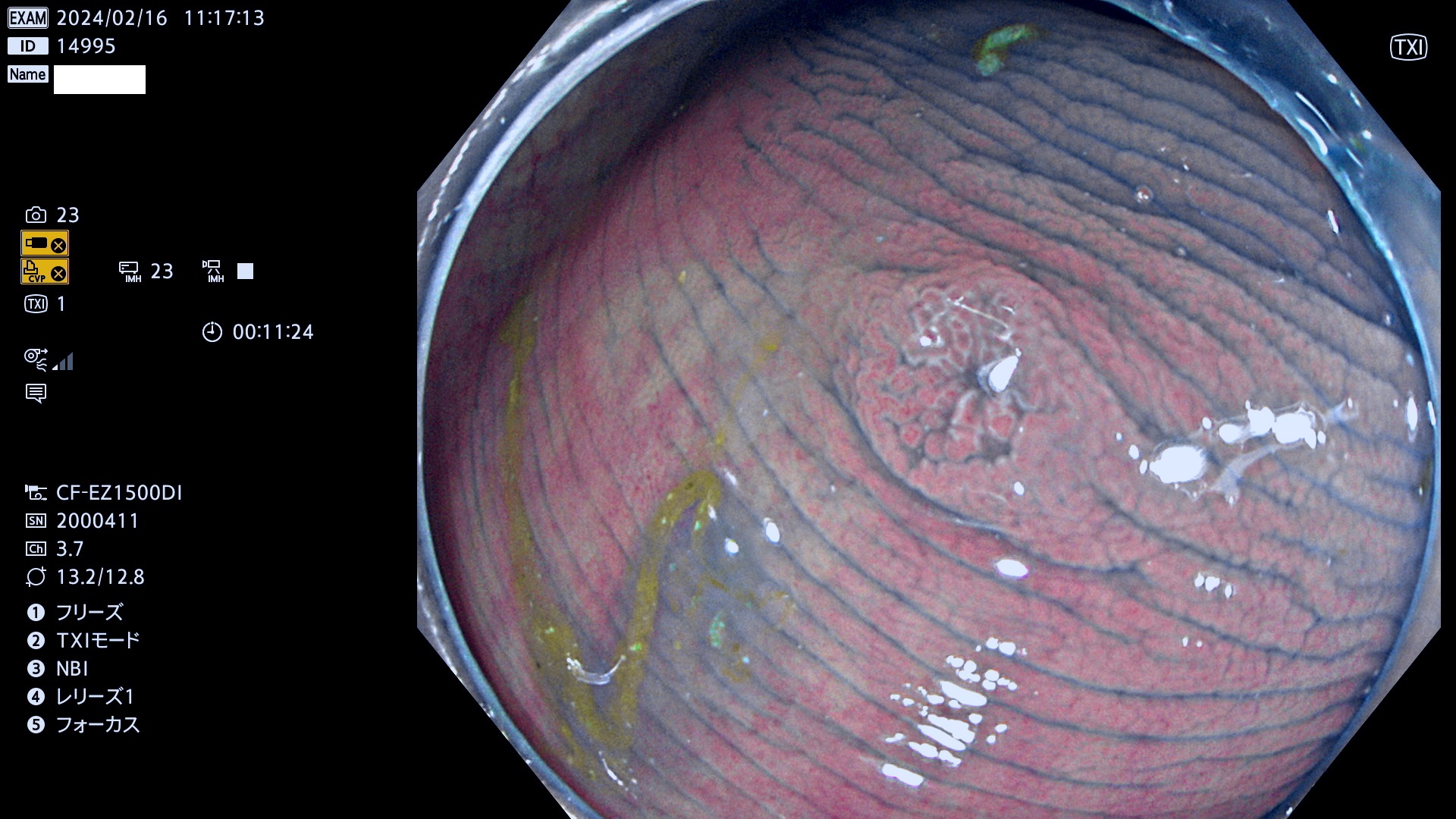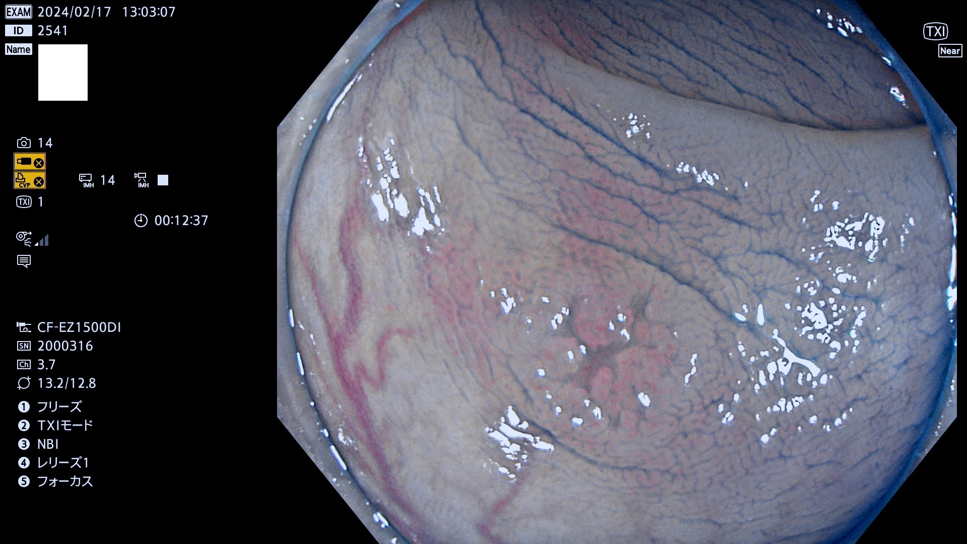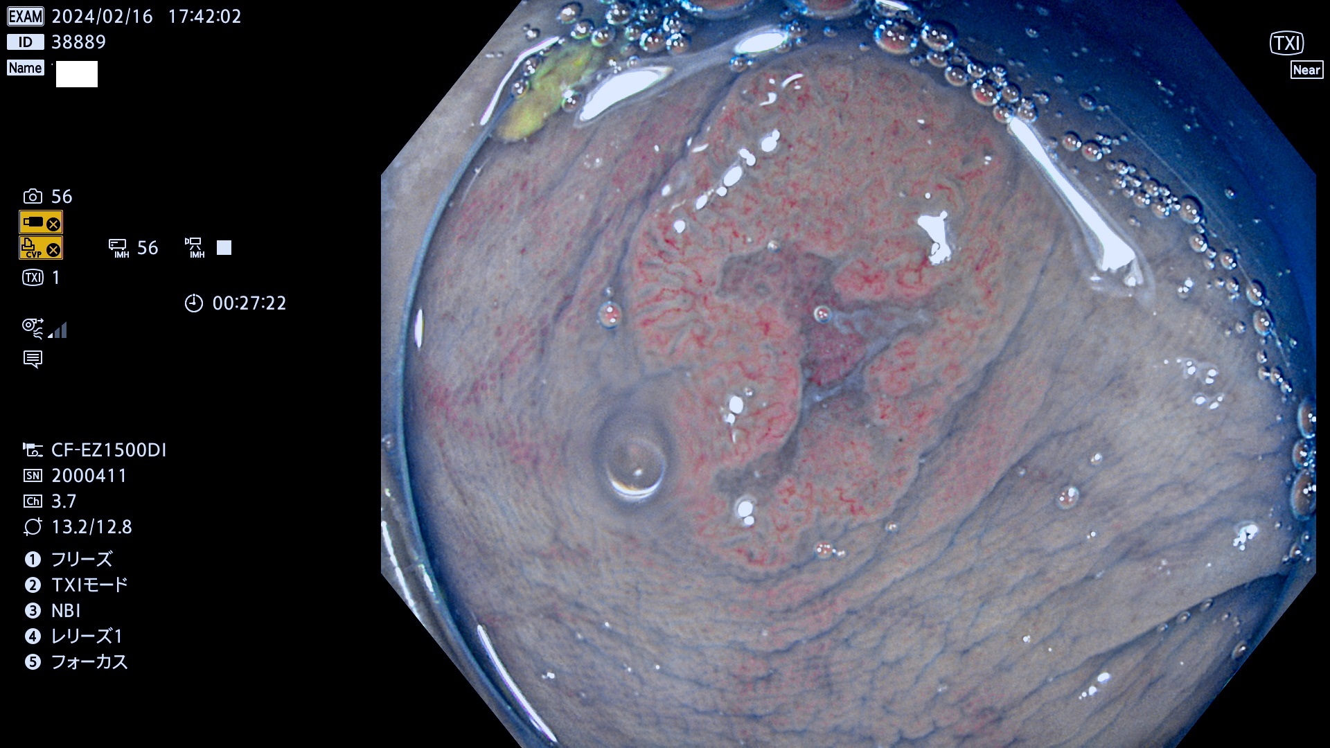 表面型腺腫(Flat Adenoma)の中で、完全に平坦な物をUb、陥凹している物をUcと呼びます。平坦隆起型(Ua)よりも、発見が難しく危険な病変です。