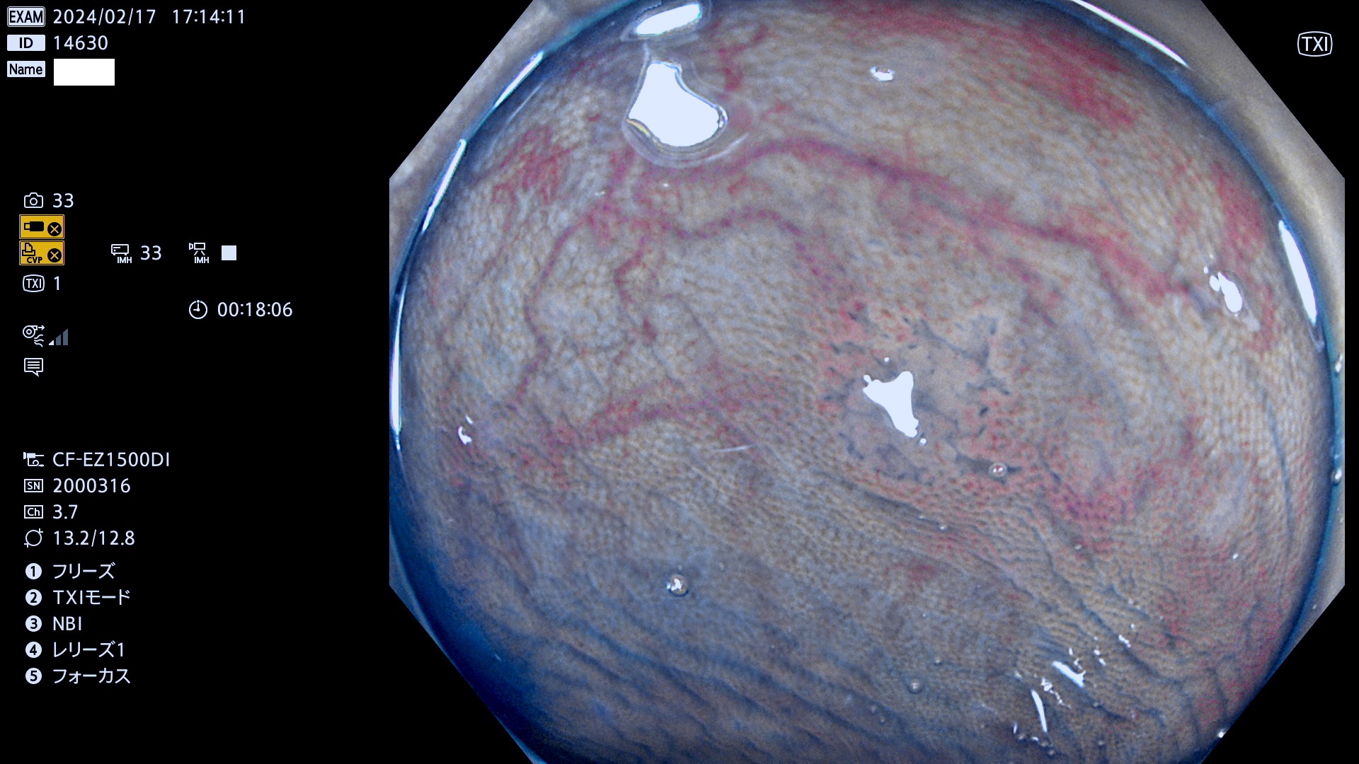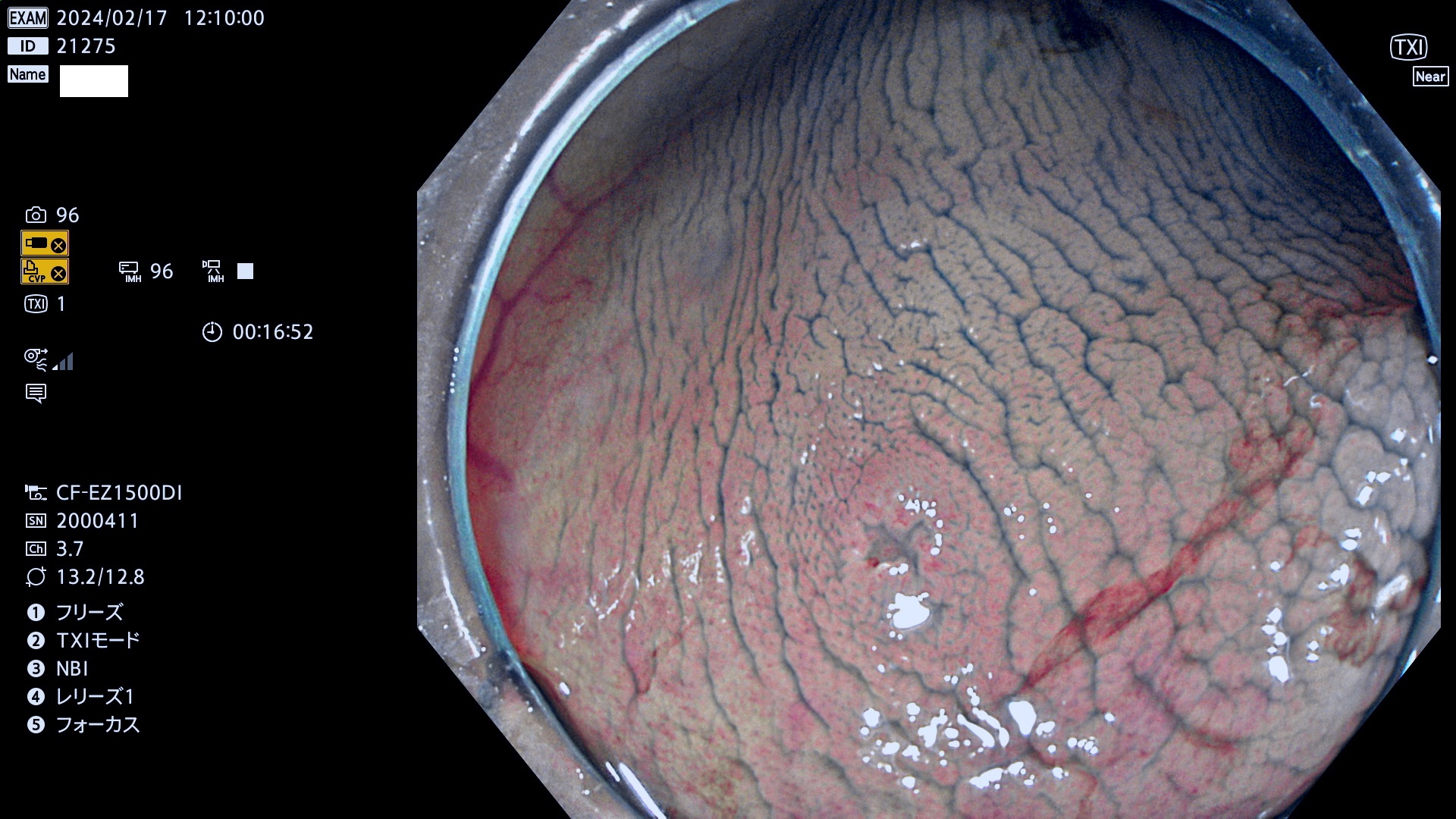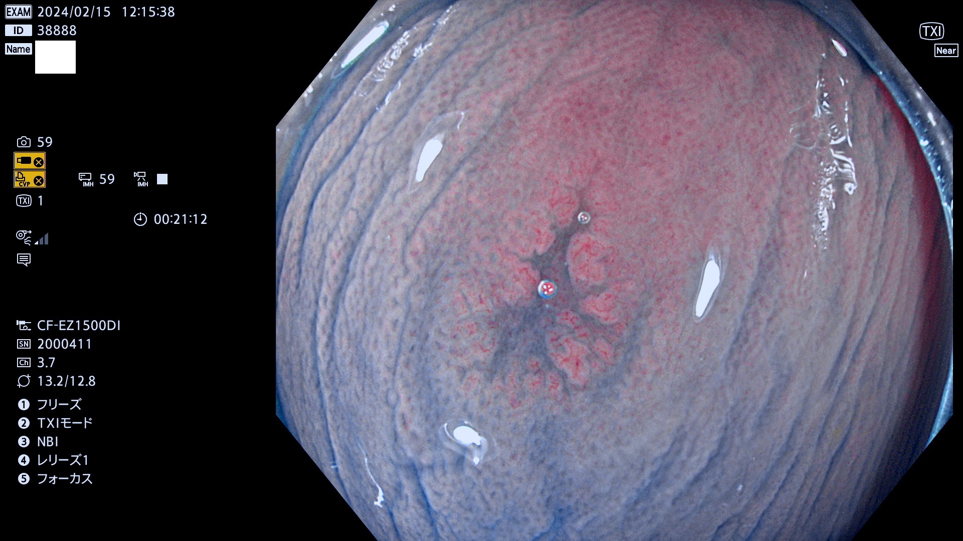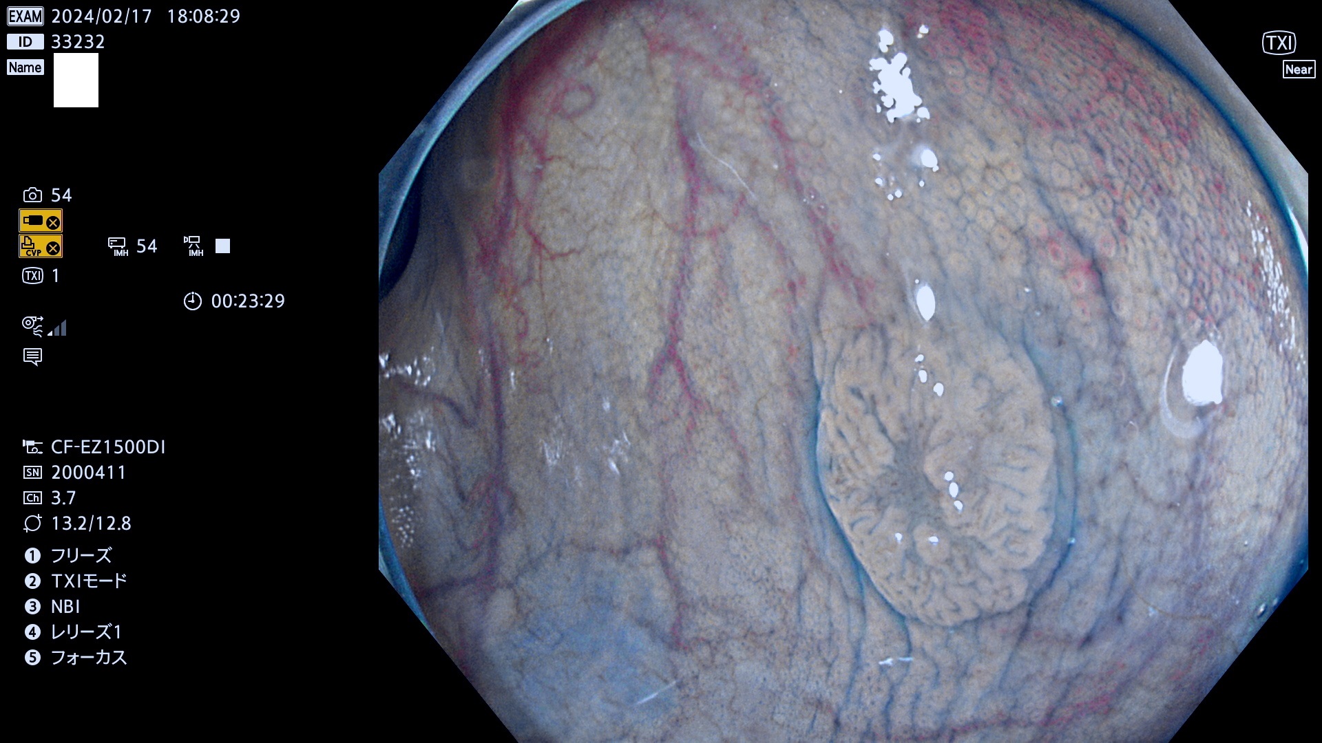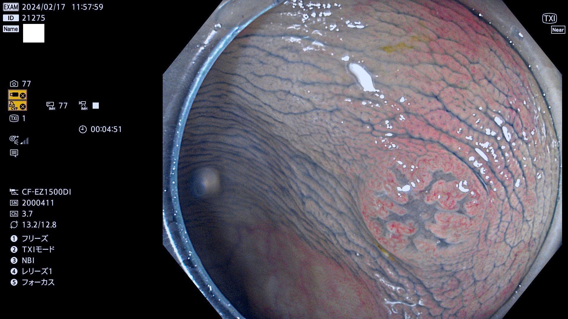 表面型腺腫(Flat Adenoma)の中で、完全に平坦な物をUb、陥凹している物をUcと呼びます。平坦隆起型(Ua)よりも、発見が難しく危険な病変です。