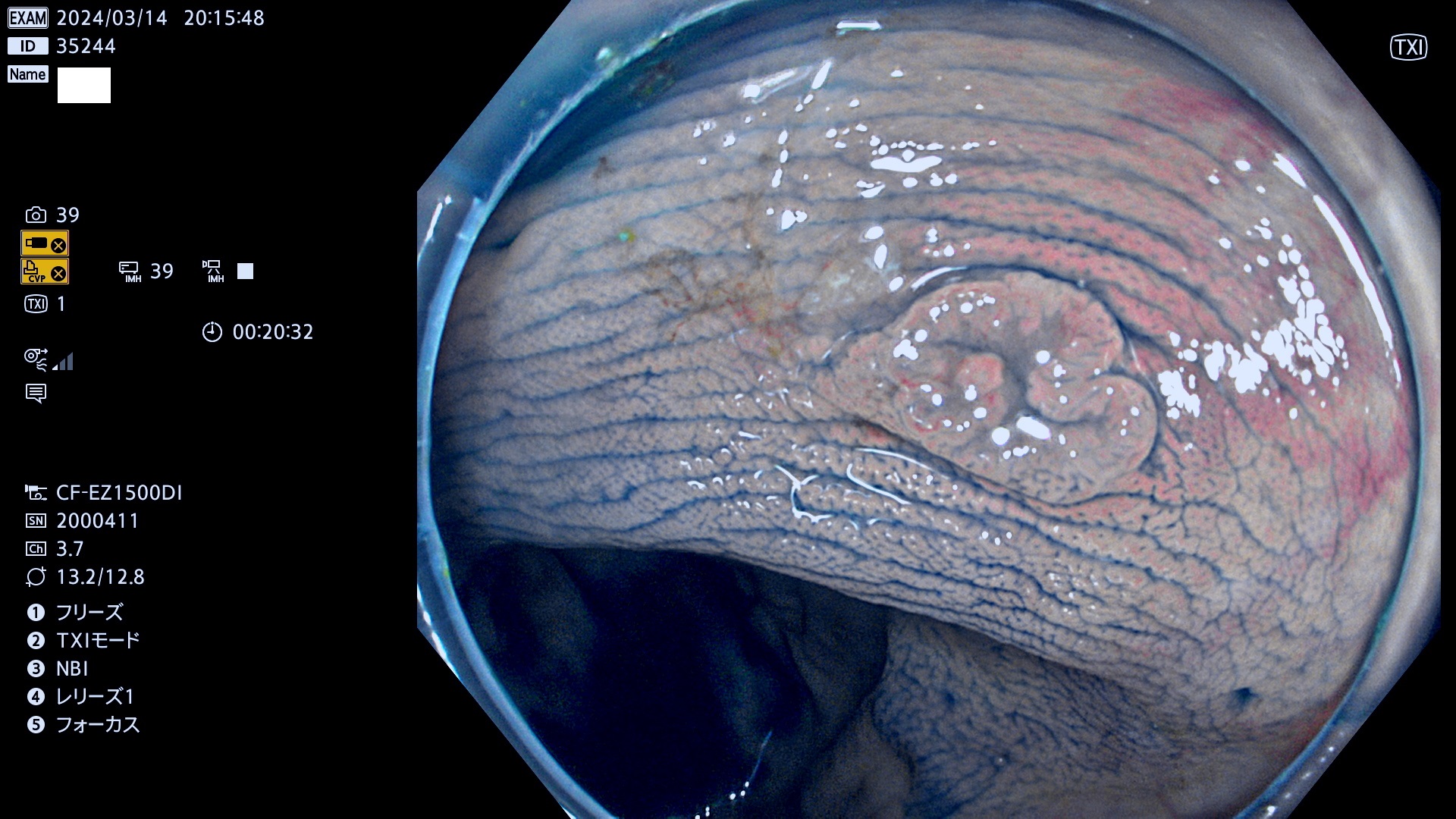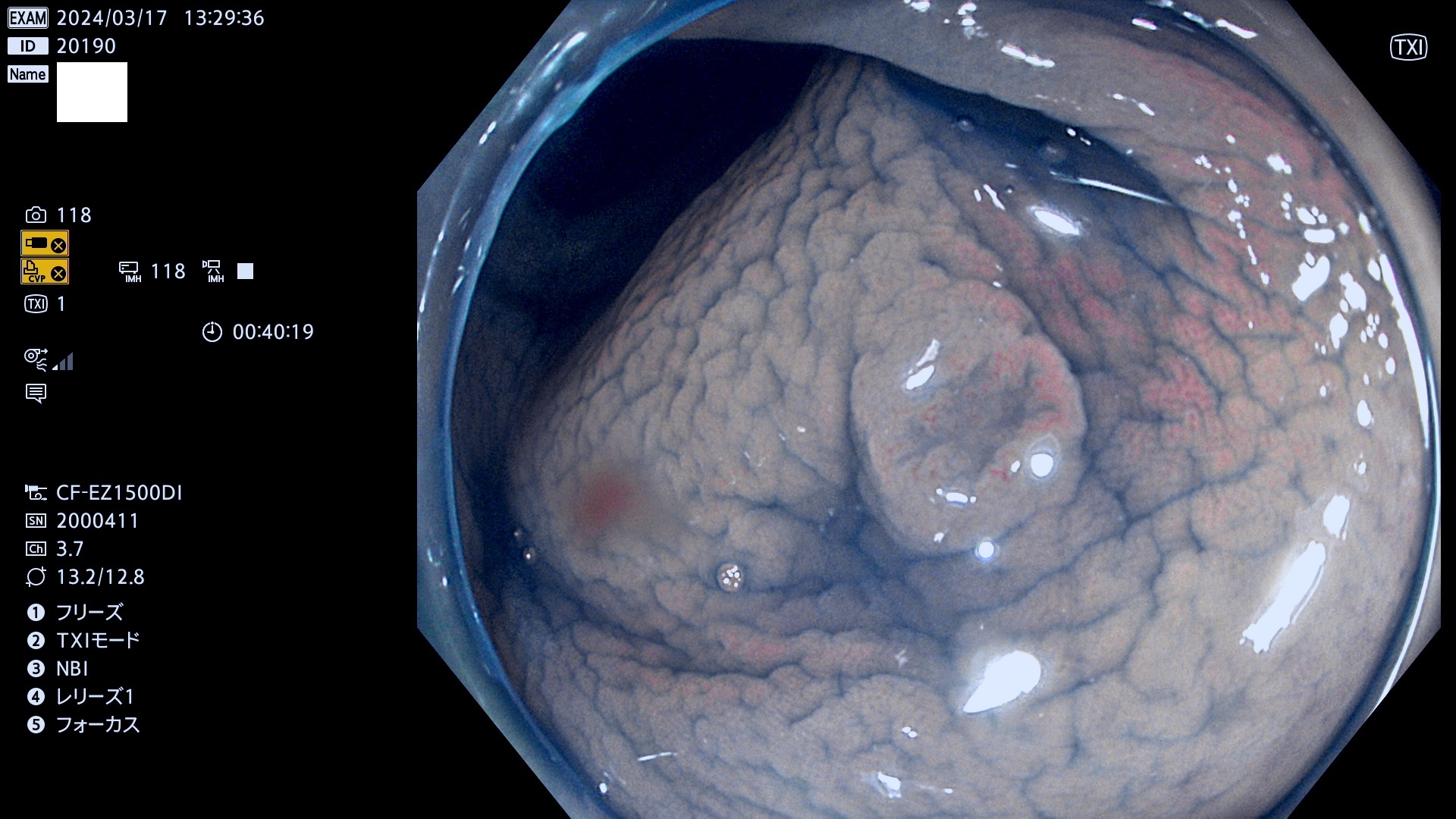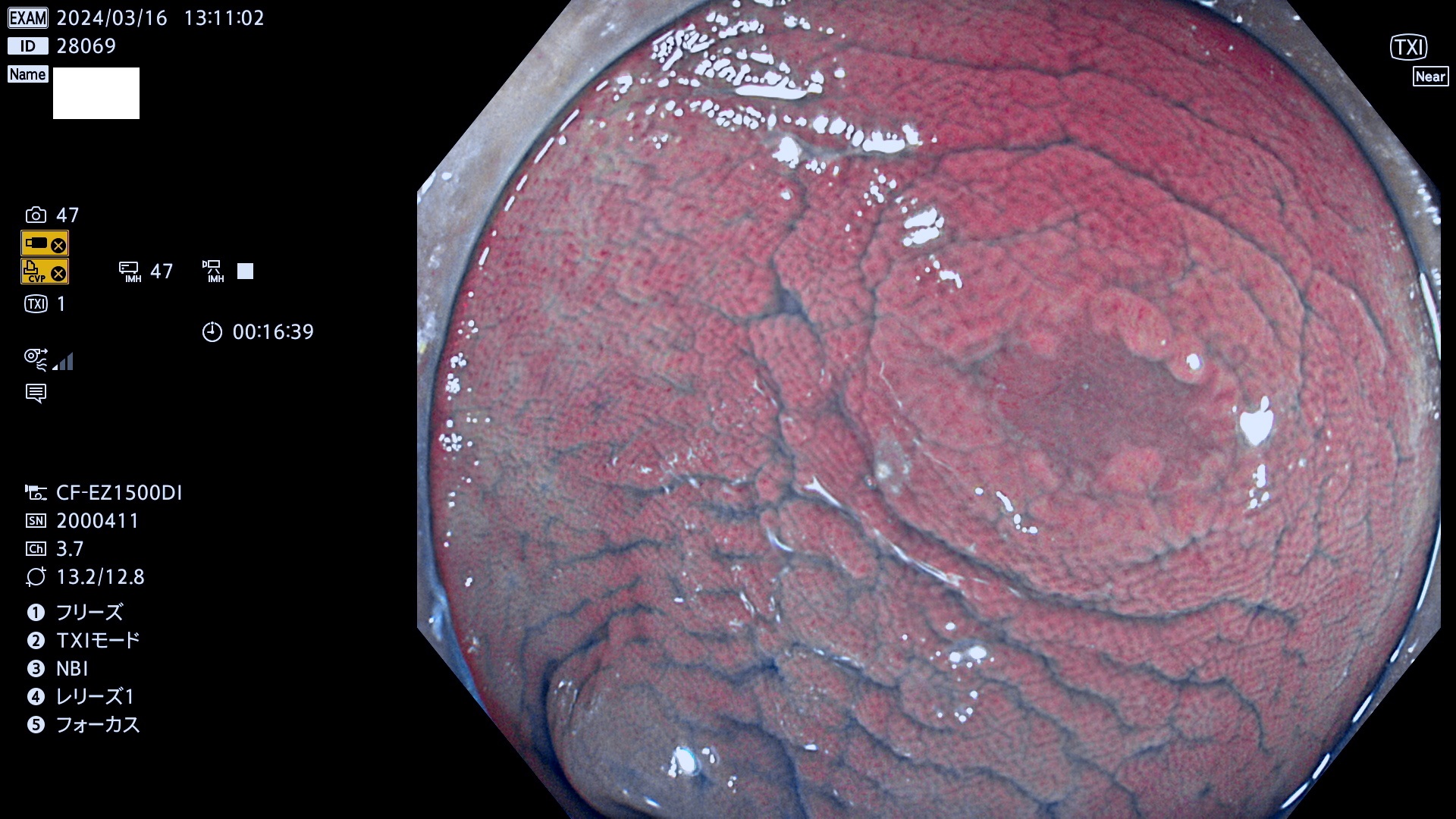表面型腺腫(Flat Adenoma)の中で、完全に平坦な物をUb、陥凹している物をUcと呼びます。平坦隆起型(Ua)よりも、発見が難しく危険な病変です。