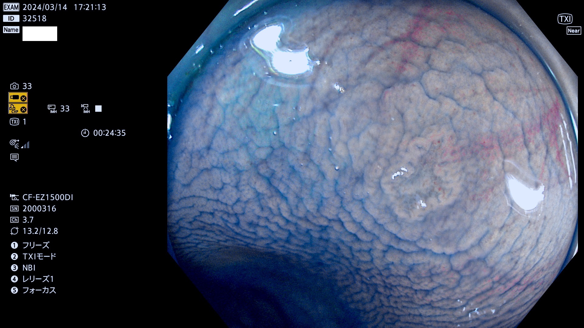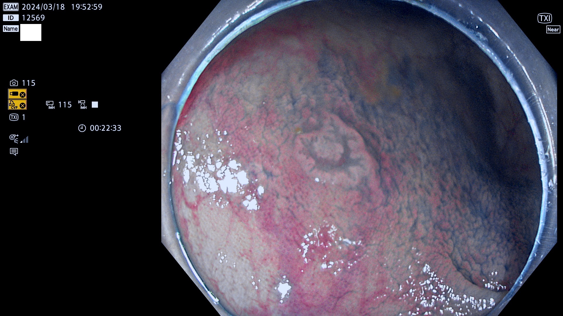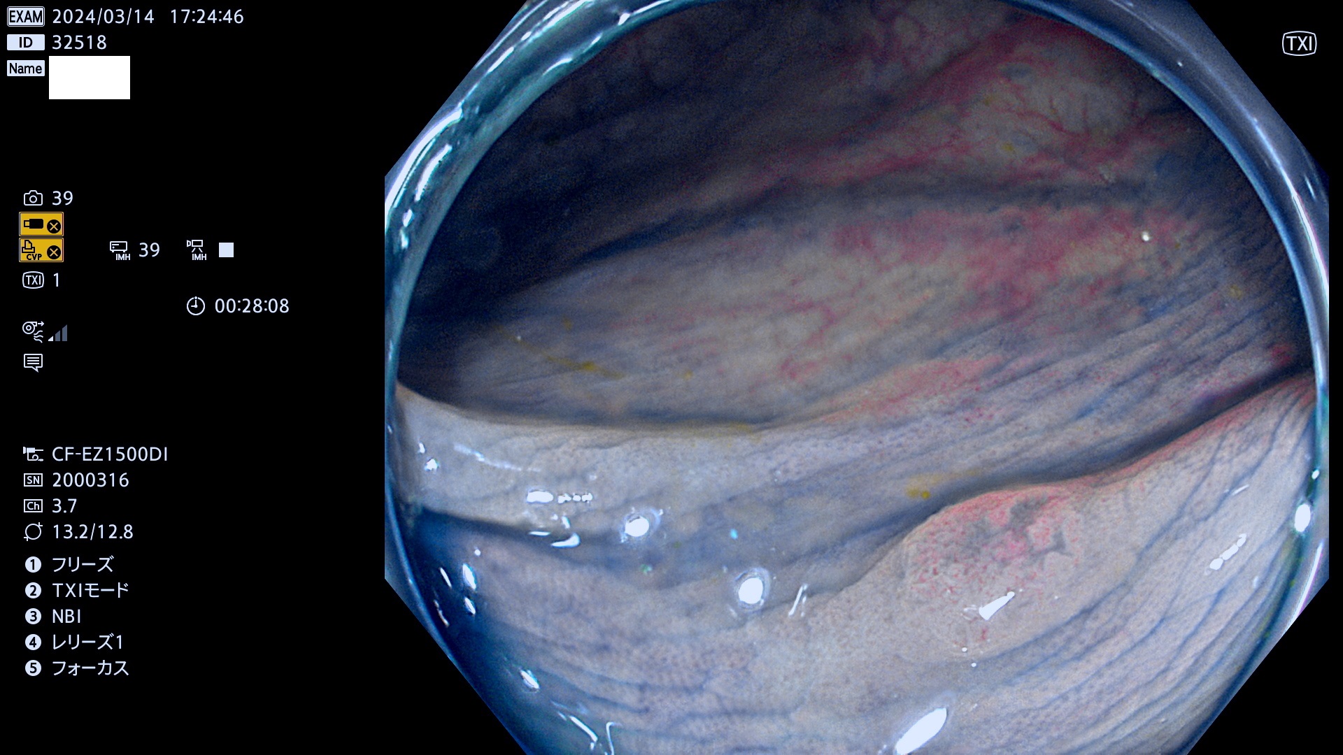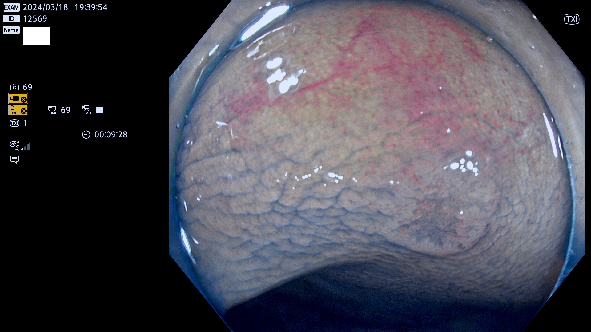 表面型腺腫(Flat Adenoma)の中で、完全に平坦な物をUb、陥凹している物をUcと呼びます。平坦隆起型(Ua)よりも、発見が難しく危険な病変です。